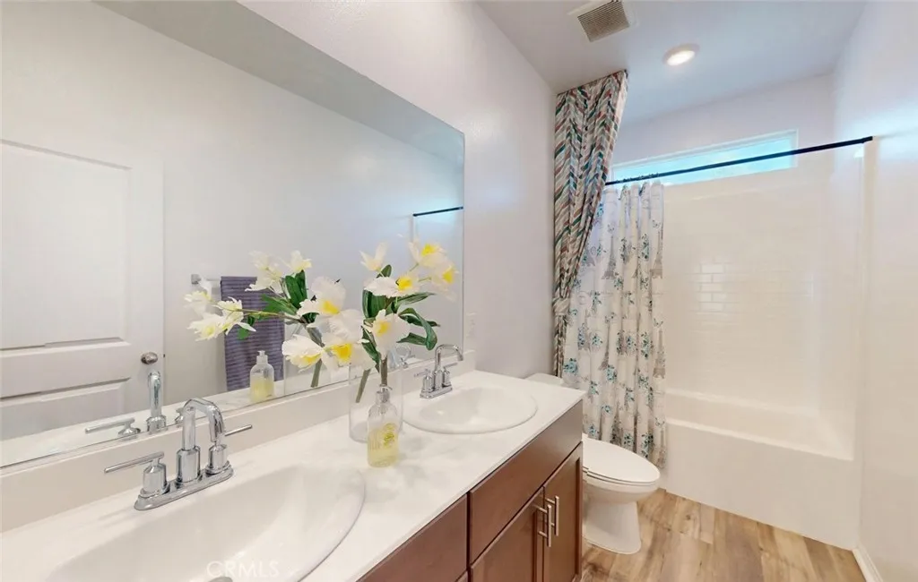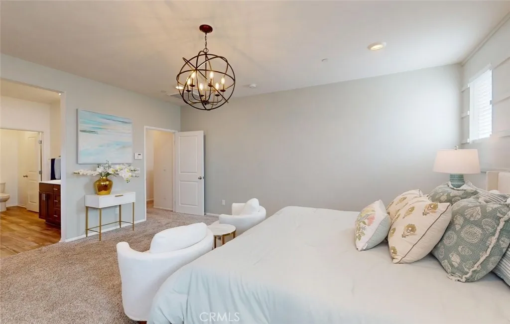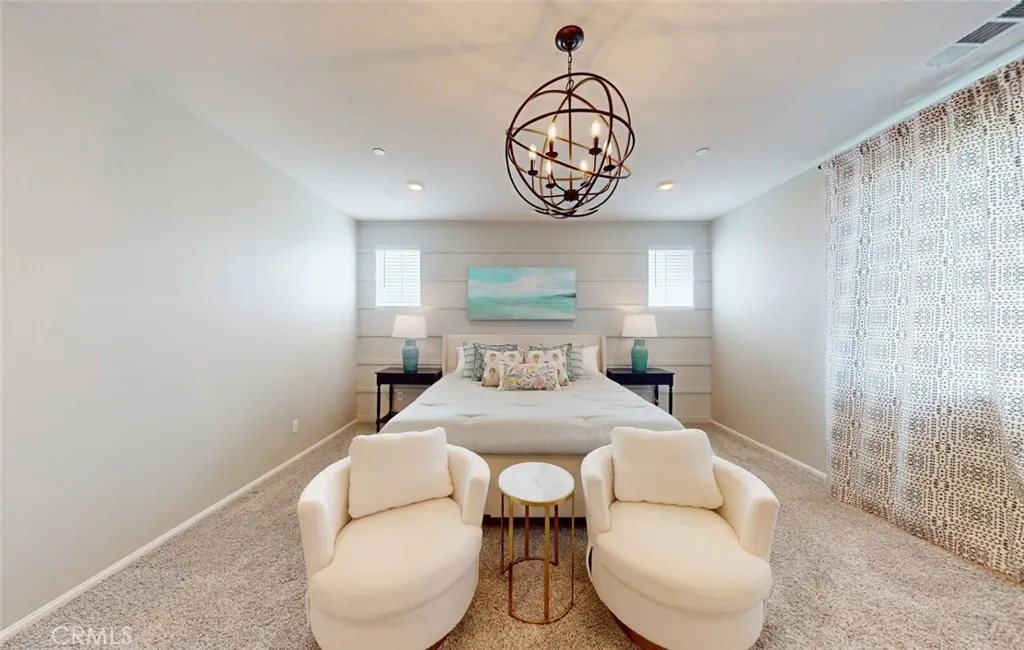 FORMER MODEL HOME on a premium corner lot in the highly desirable Audie Murphy Ranch community. Located on a premium corner lot, this beautifully designed 5-bedroom, 3-bath home offers nearly 3,000 sqft of open, light-filled living space, including fully PAID-OFF SOLAR, providing long-term energy efficiency and savings on utility costs. From the moment you step inside, the home feels elevated yet welcoming, with wide-plank flooring, clean architectural lines, and a layout that flows naturally from one space to the next. The main living area connects seamlessly to the dining space and kitchen, creating a comfortable environment for both everyday living and entertaining. At the center of the home, the kitchen features a large island, abundant cabinetry, and direct access to the backyard through sliding glass doors, enhancing indoor-outdoor flow. Upstairs, a spacious loft provides flexible use as a second living area, office, or media space. The primary suite is generously sized and filled with natural light, while additional bedrooms are well-proportioned to accommodate a variety of needs. Originally designed as a model home, the property reflects upgraded finishes and a thoughtfully planned layout throughout. The backyard offers a low-maintenance outdoor space, and the corner lot location provides additional openness and privacy. Residents of Audie Murphy Ranch enjoy access to resort-style amenities including pools, spa, parks, BBQ areas, and recreational facilities. A well-designed home that offers comfort, efficiency, and long-term value in one of Menifee’s most sought-after communities.