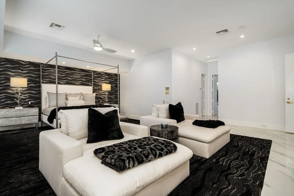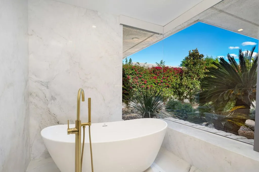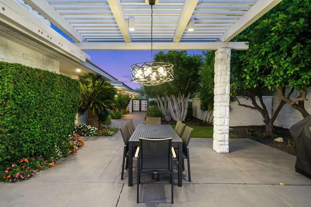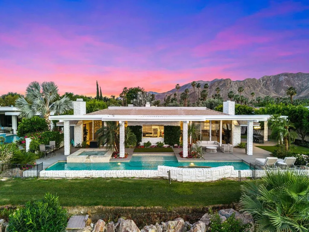 Refined desert living in Morningside Country Club. This beautifully updated contemporary home in Rancho Mirage spans approximately 4,929 sqft with 3 bedrooms, 4.5 bathrooms, and a two-car plus golf cart garage, capturing sweeping lake, fairway, and mountain views in one of the desert's most sought-after Central Valley locations. A striking double glass door entry opens to expansive living spaces with soaring ceilings, travertine flooring, and thoughtfully designed lighting throughout. The chef's kitchen has been tastefully refreshed with painted cabinetry, updated hardware, white quartzite countertops, stainless steel appliances, an extra drawer dishwasher, and a raised ceiling detail. An oversized picture window above the sink creates a dramatic focal point, inviting the outdoors in with expansive views that stretch for miles. A standout feature is the fully functional chill room--an exceptional and rare amenity that keeps the pantry space cooled, offering added convenience for food storage and ideal for part-time residents or those who love to entertain. Adjacent living and dining areas flow seamlessly to the outdoors, creating an effortless indoor-outdoor lifestyle framed by sensational mountain views, lush fairways, and an abundance of palm trees. The primary suite is a true retreat, recently reimagined with large-format porcelain tile flooring with inset carpet detail, refined finishes including wallpaper, and two spa-inspired bathrooms, complemented by dual walk-in closets with custom luxury built-ins. The bedroom itself offers a private sitting area with fireplace, creating a comfortable and inviting space to relax. Two generous guest suites offer comfort and flexibility for family or visitors, including one with its own living area that also serves beautifully as a private office or workspace. Extensive recent improvements enhance both the interior and exterior, including full interior repainting, updated lighting, custom bar addition, updated appliances, and refreshed carpeting in guest rooms. Outside, the grounds have been professionally redesigned with enhanced landscaping, artificial turf, upgraded LED lighting, and refreshed hardscape. The pool and spa have been improved with updated equipment and thoughtful PebbleTec refinements, and feature a sun shelf ideal for lounging, creating a private resort-style setting perfect for relaxation or entertaining, complete with exterior misters...