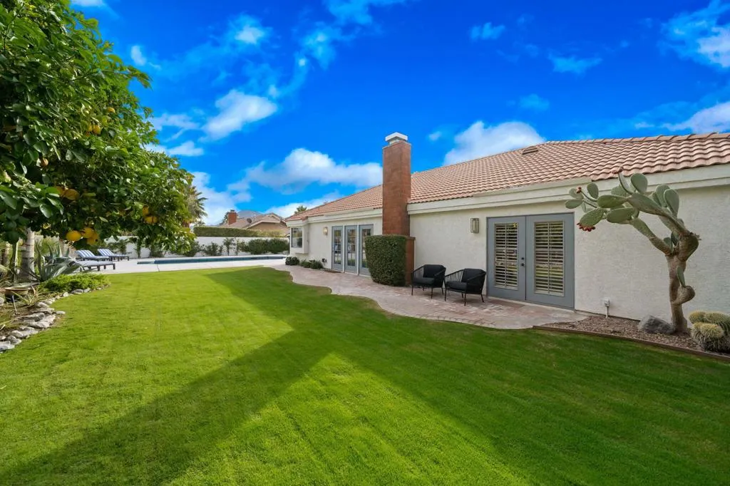 South Palm Desert Vibe doesn't get better than this! BEAUTIFULLY modern & comfortable Furnished turnkey VERY SPECIAL home with vaulted ceilings, 3BR, 4.25 BA, + Bonus TV Room & Wet Bar, & a STELLAR back yard, Pool/Spa, BBQ, mature landscaping & fruit trees. Great Canyon Cove area, expansive greenbelt and mountain views. This home has it all. Short distance (walkable for the fit) from the world famous El Paseo shops, The Living Desert, Westfield Mall, fine dining, golf, tennis, hiking trails & parks. Ideal for part-time vacationers and fun/sun seekers. Located in great neighborhood of stately homes. Sorry - no pets. Next available May, $4500, June-Aug $4200, Sept $4500, $Oct $5500. Not available November & Dec 2026, AVAILABLE Jan-April 2027 at $9300.