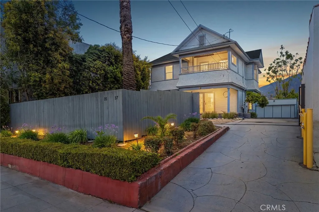 Unique Victorian inspired duplex in Pasadena. Charming up/down duplex offering plenty of potential. 4 bedrooms, 2 bathrooms total-each unit has 2 bedrooms and 1 bathroom, with a total square footage of 2467, on a 6,453 square foot lot. Legally a duplex, with 2 separate addresses-35 & 37 E. Montana, the home is currently used as a large single-family residence but can be made back into two units. Each unit has its own kitchen and service porch areas, both with washer and dryer hook ups. Completely fenced for privacy, with a long driveway, offering extra parking with room for an RV. The detached garage has been transformed into a gym/office space, with the possibilities of converting it into an ADU. Perfect for large/extended families, or owner/users; live in one unit and rent out the other.