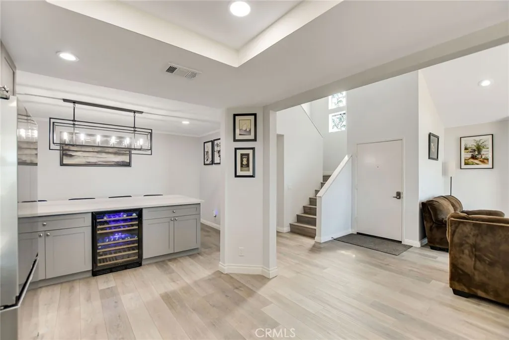 Welcome to this beautifully upgraded home nestled in a quiet cul-de-sac in desirable Anaheim Hills. This spacious 3-bedroom, 3-bath residence features two ensuite bedrooms, including a convenient downstairs bedroom perfect for guests or multi-generational living. The heart of the home is the stunning, newly remodeled kitchen, complete with a large party island designed for entertaining, sleek new appliances, and a built-in wine cooler—perfect for hosting gatherings in style. Enjoy breathtaking, unobstructed sunset views and sparkling city lights right from your home—an ideal setting to relax and unwind after a long day. The primary suite offers a private balcony where you can take in peaceful moonlit evenings. Located in a beautiful Master Community of Anaheim Hills. This home combines comfort, elegance, and incredible view. Lots of hiking trails. HOA covers: Pool / spa, Exterior + roof Insurance, Grounds maintenance