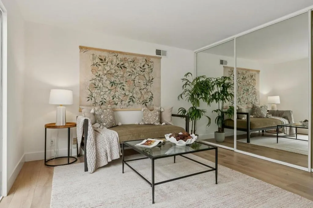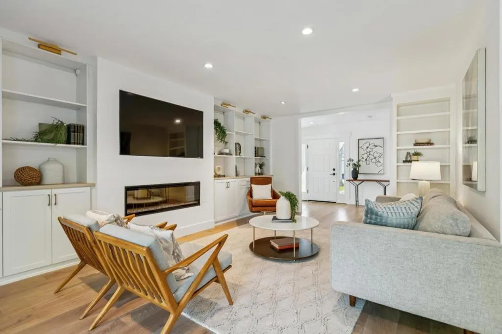 Remodeled end-unit townhome in desirable Sharon Oaks, just one block from shops and restaurants. Bright, open floor plan with fresh paint and engineered white oak floors throughout. Spacious living and dining areas feature a sleek linear fireplace with custom built-ins and sliding glass doors to a private rear yard for easy indoor-outdoor living. Updated kitchen with white and grey cabinetry, quartz counters, subway tile, and stainless-steel appliances, including a gas range. Main-level bedroom suite with private patio and garage access, ideal for guests or a home office. Upstairs are two additional bedroom suites, including a primary with dual closets and an updated bath. Additional features include an attached 2-car garage, interior laundry, central air conditioning, and access to the community clubhouse and pools. Conveniently located near Stanford, Sand Hill Road, and top-rated Las Lomitas schools.
