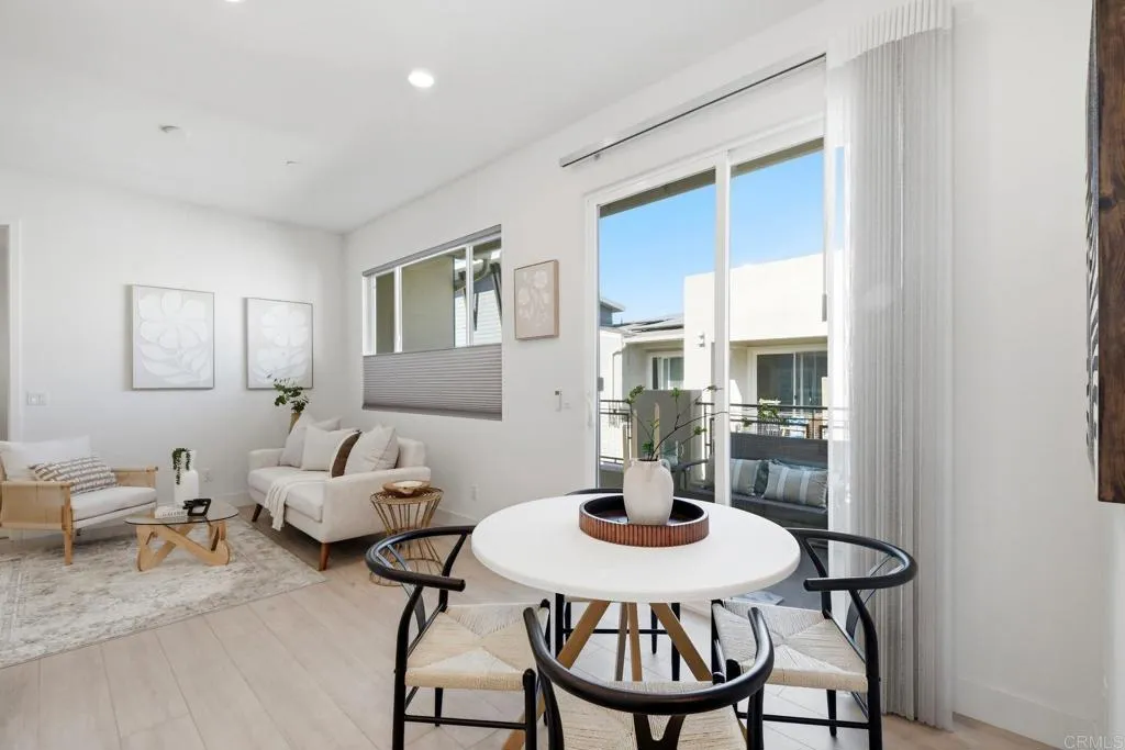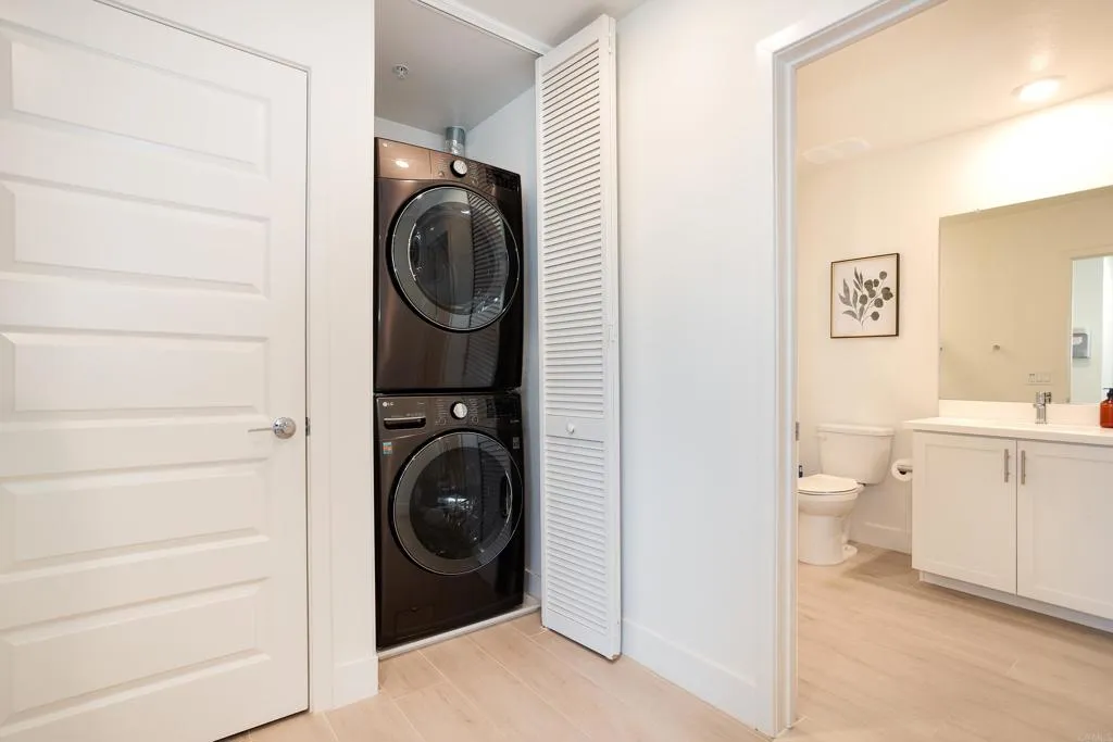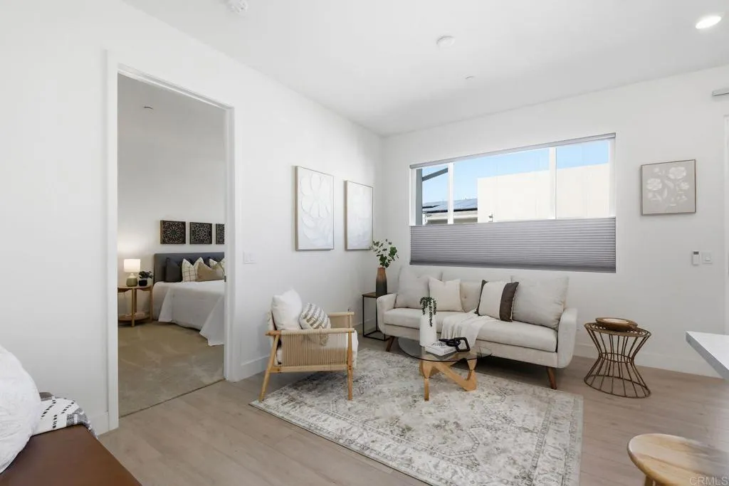 Single level luxury living at the penthouse level - elevator access. Built in 2020 this stacked low-rise building are 'The 'Flats' an exclusive limited number of units within Kensington At The Square Bressi Ranch. This top floor unit has been fully upgraded and is in pristine condition. Split floor plan for privacy with an open concept great room laid out between the two bedroom suites. Two extra large bedrooms with ensuite bathrooms. Primary bedroom features a large walk in closet. Tiled wood like flooring bring warmth to the main living areas. Luxury extra thick carpeting in bedrooms. Stacked interior laundry center along side a walk in storage closet. Enjoy the step out covered balcony with western exposure. Secure lobby entry with intercom access. Weekly janitorial service. Paid solar. Oversized 2-car garage including a work bench, storage cabinets and overhead storage racks. Garage is already equipped with e-car charging wiring - ready to install a car charger device. The garage is at entry level with an elevator that leads up two floors of stacked units. Absolutely exquisite and unique lifestyle located in the heart of Bressi Square and Bressi Town Center - all the convenience of shopping, dining, entertainment and more! Community resort pool, bocce ball court, BBQ's, picnic tables and playground to enjoy. Minutes from Carlsbad beaches, top notch luxury golf resorts, LegoLand, outdoor outlet shopping mall, nature preserves and lagoons. Enjoy the Carlsbad lifestyle in this luxury newer construction Flat.