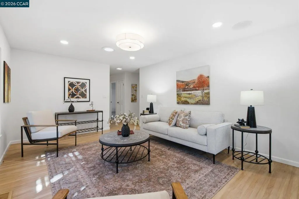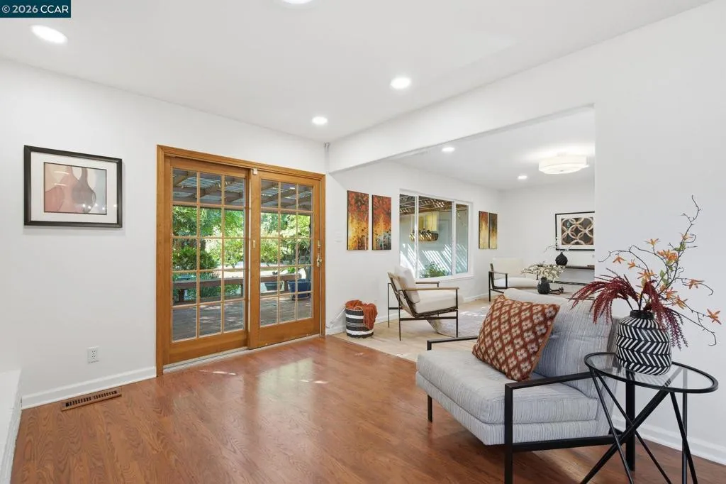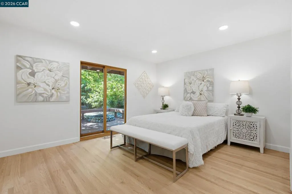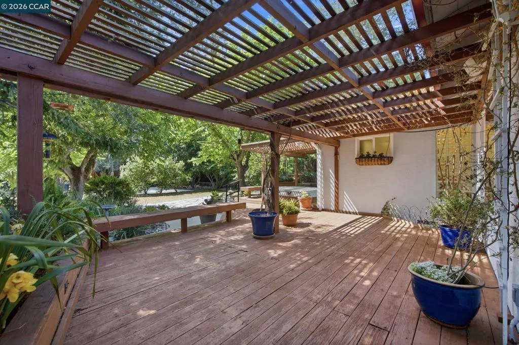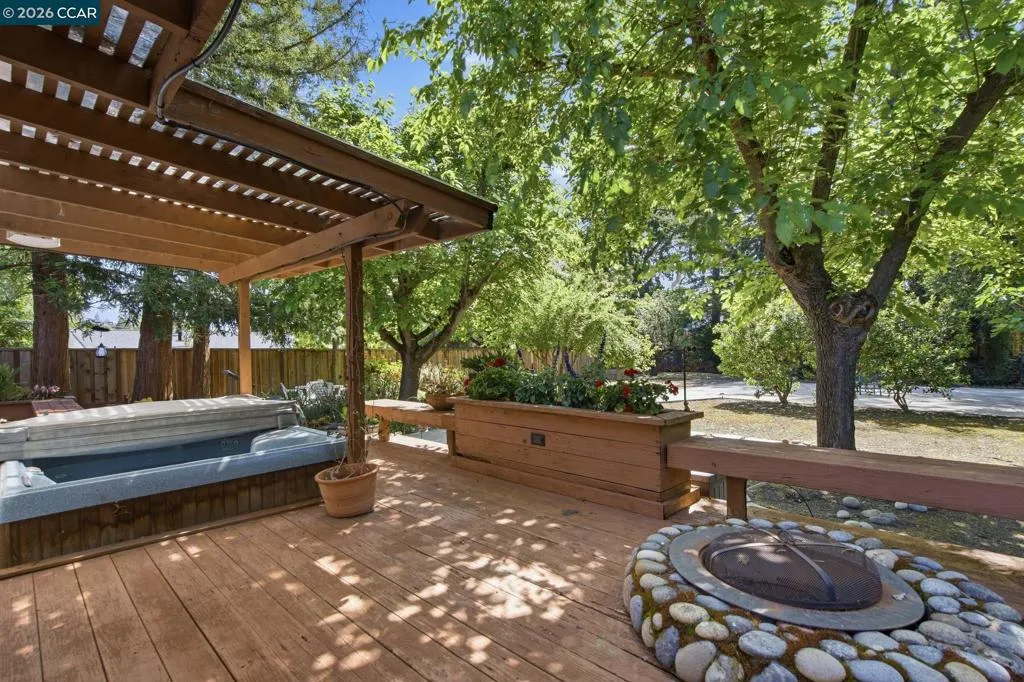 Nestled in a serene, park-like setting among majestic redwood trees in the heart of the Virginia Hills neighborhood, this exceptional property offers a rare blend of privacy, beauty, and a relaxing lifestyle. A spacious covered deck invites year-round enjoyment, overlooking a tranquil water feature, relaxing hot tub, and an inviting outdoor fireplace—creating the ultimate backdrop for both peaceful evenings and memorable gatherings. This charming three-bedroom, two-bath residence is ideally situated in the highly desirable Virginia Hills neighborhood of Martinez. Thoughtfully updated bathrooms, refinished hardwood flooring, and fresh interior paint enhance the home’s light, bright, and move-in-ready appeal. Designed with both comfort and entertainment in mind, the home seamlessly connects indoor and outdoor living spaces, making it perfect for hosting family and friends. The expansive backyard also features a versatile cement pad at the rear of the property—ideal for a future ADU, artist’s studio, workshop, or additional creative space. A truly special opportunity to own a private retreat in one of Martinez’s most sought-after communities. Close to shopping, entertainment, and restaurants.