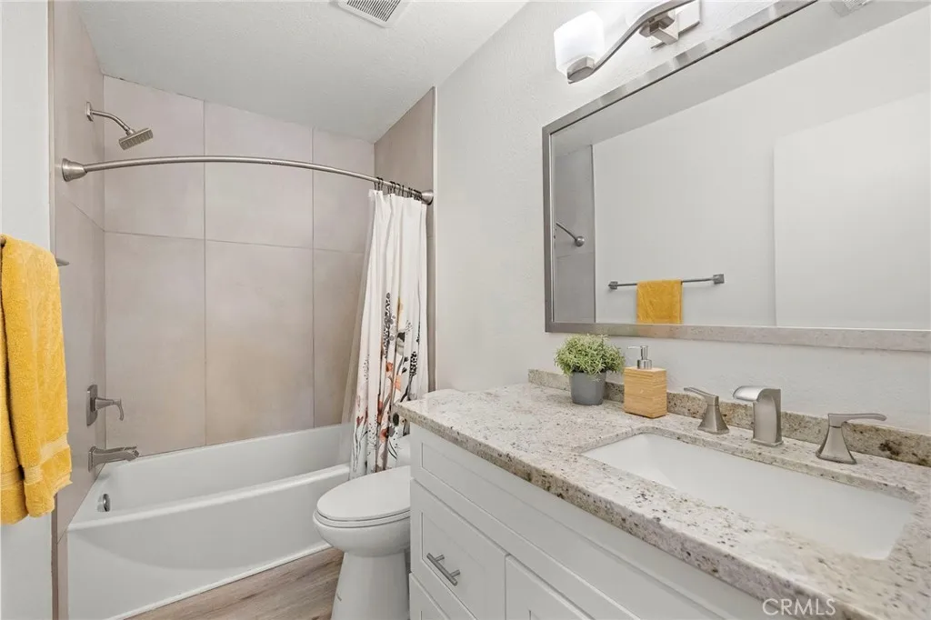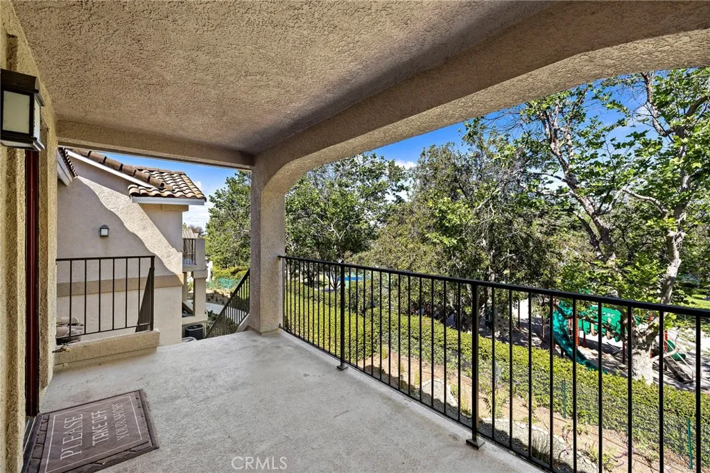 This wonderful starter home in beautiful Rancho Santa Margarita is located on the upper level with a spacious balcony perfect for enjoying the peaceful and serene community with views of trees & beautiful landscaping and expansive park-like community grounds, steps from your door. As you enter the home from the balcony the family room offers high ceilings a fireplace & windows with plenty of light. The kitchen displays light & bright granite counter tops & white Shaker cabinets with plenty of space for a cozy dining table for the family. The master bedroom with ensuite bathroom and the secondary bedroom with renovated bathroom provides a comfortable living space. For added convenience you have a downstairs attached garage with direct access to the home. 2nd parking spot available with permit. Enjoy the many amenities of the community with a swimming pool, tennis courts, basketball court, Pickle ball courts and two tot lots. Located by convenient neighborhood shopping, and Recreation Centers. RSM Lake is just a few blocks away featuring Boating. Also enjoy Parks, Hiking and Biking Trails. Make an appointment to view this beautiful home now!!