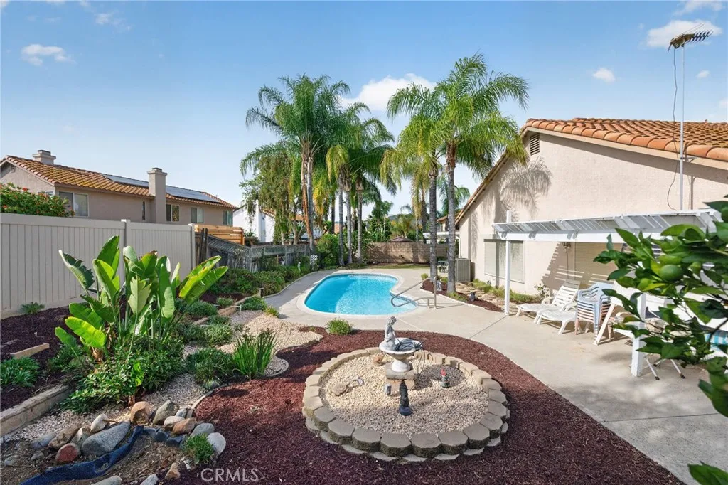 Unlock the potential of this spacious 2,117-square-foot single-story gem, perfectly positioned for those seeking a blend of privacy and lifestyle. This 4-bedroom, 2-bathroom residence offers a functional layout featuring a formal living room and an open-concept kitchen that flows seamlessly into the family room, anchored by a cozy gas fireplace. The primary suite serves as a quiet retreat with its own ensuite bath.The true highlight is the tropical backyard oasis, designed for ultimate relaxation and entertaining. Enjoy a private swim in the pool, framed by lush greenery including banana, apricot, and lemon trees. The expansive covered patio features a dedicated gas line for your BBQ, making weekend hosting effortless. Practical upgrades provide peace of mind, and include tile flooring in the family room for easy cleanup from the pool, newer HVAC and pool equipment, plus comprehensive security screens (some manual, some electric) on all windows and sliding glass doors. Storage is never an issue with a 3-car garage and additional side-yard space for a boat, car or trailer. While the interior awaits your modern touch, the solid "bones" and premium outdoor amenities offer a rare foundation in a sought-after neighborhood. Bring your vision and transform this well-maintained house into your dream home.