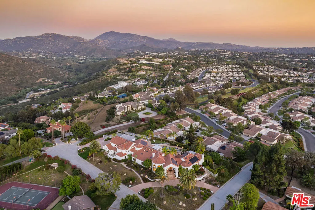 Welcome to this extraordinary estate a rare and remarkable offering that redefines luxury living. Commanding in presence and breathtaking in every detail, this magnificent 9,079 sq ft residence is prominently perched atop a hill on over one acre on a stunning corner lot, boasting breathtaking 360 panoramic views that must be seen to be believed. Dramatic, exciting, and impeccably designed. Offering seven bedrooms, a private office, multiple dens off the bedrooms, and eight beautifully appointed bathrooms, the scale and flexibility of this home is unmatched. This exceptional residence lives like a single story, with nearly all living spaces thoughtfully situated on the first level making everyday life effortless and accessible for all. Two bedrooms and a large den/rec room upstairs provide the perfect separation of space, making this an ideal sanctuary for multi-generational families. Whether accommodating in-laws, adult children, or extended family, every member enjoys their own sense of privacy, comfort, and independence under one magnificent roof.Step inside and be immediately captivated by soaring grand ceilings adorned with extraordinary architectural detail. An abundance of natural light pours in throughout, casting a warm, luminous glow across every room and creating an ambiance that is both grand and deeply inviting. Elegant finishes include gleaming marble and luxury vinyl flooring, seamlessly blending timeless sophistication with modern comfort.The outdoor spaces are magnificent a true entertainer's dream and a nature lover's paradise. Whether hosting elegant gatherings, lively celebrations, or peaceful evenings with loved ones, the sprawling grounds provide the perfect backdrop for every occasion. As the sun dips below the horizon, the sweeping 360 views transform into a breathtaking canvas of color, making every sunset a spectacular and unforgettable event. The gas-heated pool and spa invite year-round enjoyment, while the expansive grounds offer endless possibilities for outdoor living at its absolute finest. For the car enthusiast, a four-car attached garage with workroom plus an additional stunning four-car garage provide an unparalleled level of space and versatility, all accessed via a grand circular driveway that makes a lasting first impression. Sustainability meets luxury in the most impressive fashion. An advanced solar system featuring 100 panels generates 30.55 kilowatts of power, batteries capable of sustaining the entire home through a power outage for up to one month. A 40-amp Tesla EV charger is also included. Two whole-house attic fans keep the home naturally cool throughout the summer months, while multiple Nest AC units provide seamless zoned climate control and comfort year-round.Security and peace of mind are equally paramount, with a state-of-the-art system featuring comprehensive camera coverage and 24/7 CCTV monitoring of both the interior and exterior of the home. There is a state of the art sauna in the garage as well. This is more than a home, it is a lifestyle. A one-of-a-kind estate where grandeur, sustainability, and unrivaled views converge to create something truly extraordinary. This home truly has it all.
