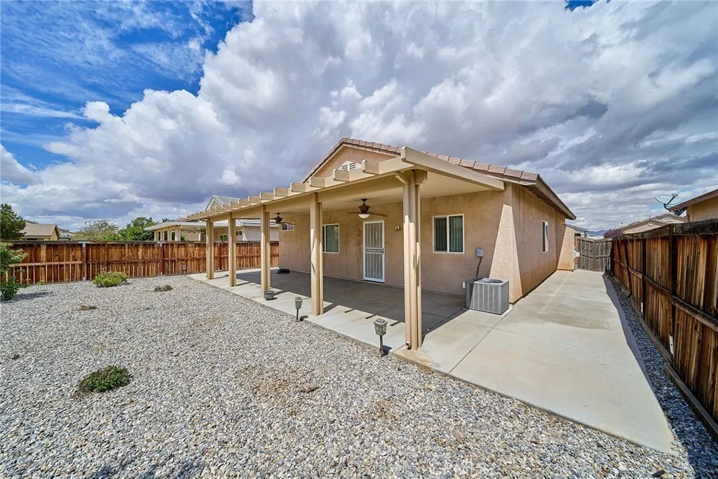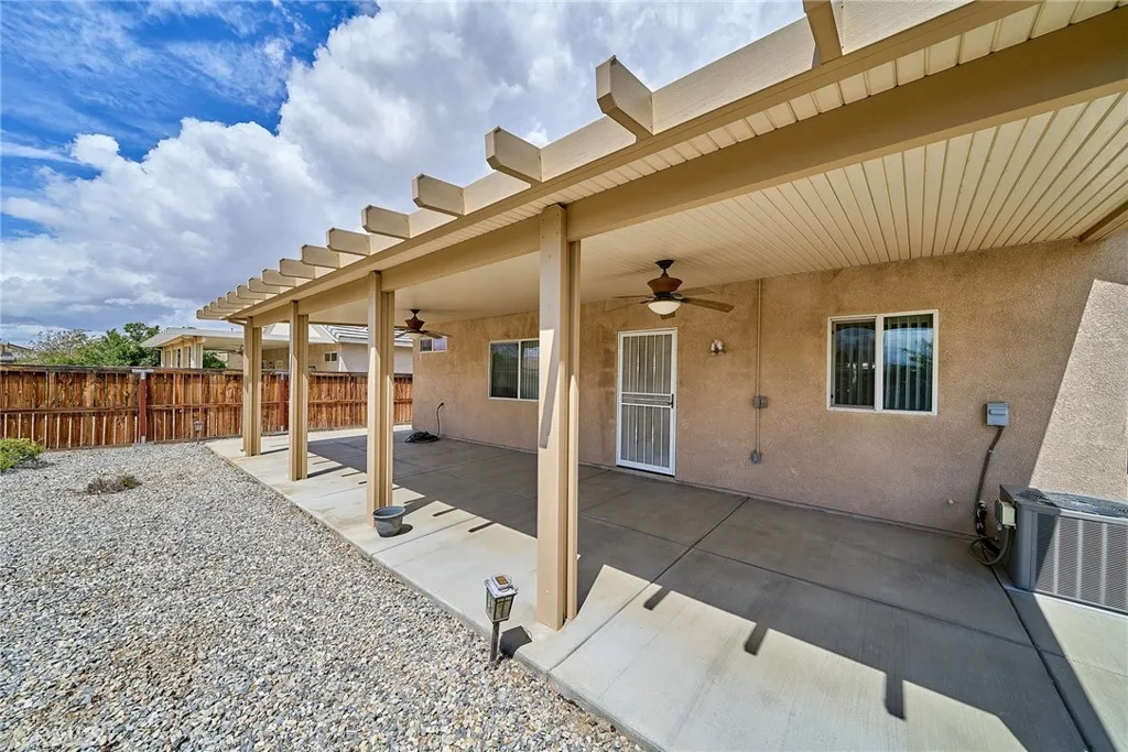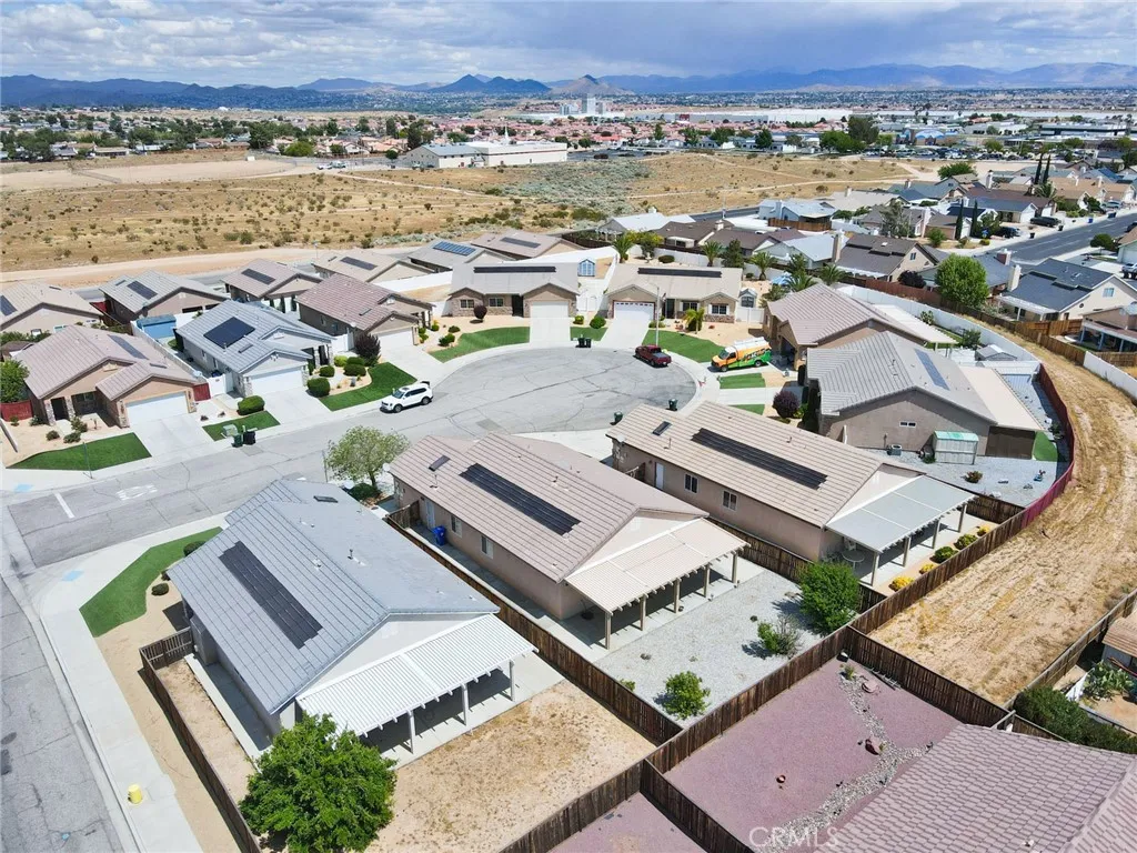 Welcome to this beautifully maintained 3bedroom, 2bath home with an attached 2-car garage offering 1,365 sq ft of cozy and open living space. Enjoy outdoor living in the private, fenced backyard with an aluminum patio—perfect for relaxing or entertaining and easy to maintain. Located on a quite cul-de-sac.in a peaceful 55+ senior community with no HOA fees or restrictions, this home offers both comfort and convenience. This home was built with a solar systems already installed. Additional features include tankless water heater, and an individual laundry room with a utility sink for added convenience. The garage is equipped with built-in cabinets, providing excellent storage space, while the front yard features low-maintenance artificial turf for easy upkeep. Kitchen appliances, washer, and dryer are included. Ideally situated near shopping, restaurants, medical facilities, and just behind Desert Valley Hospital, with easy access to the I-15 freeway for commuters. This is a fantastic opportunity to own a turnkey home in a desirable Victorville neighborhood. Schedule your private showing today—this one will not last!