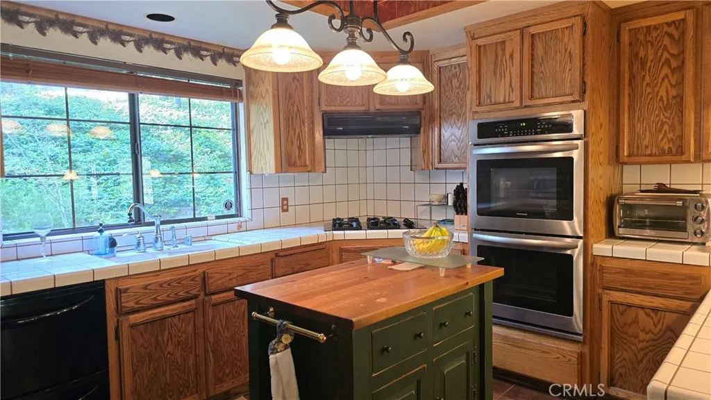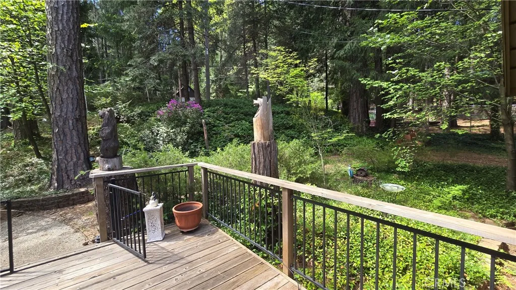 CREEKSIDE MOUNTAIN LIVING! Set alongside Middle Butte Creek, this property offers a tranquil setting with the soothing sounds of the babbling brook, a bricked patio with fire pit, shaded by towering pines—perfect for relaxing or entertaining. The fully usable property also features a side gate for easy backyard access and is easily maintained with full irrigation and drip systems. The property is also home to abundant year-round wildlife, including deer. In spring, the grounds come alive with vibrant blooms including azaleas, rhododendrons, periwinkle, columbine, foxgloves, dogwoods, and more. A large front deck and attractive tile entry welcome you into this inviting home, where the open living and dining areas feature gorgeous hardwood floors, a woodstove on a stone-accented hearth, and peaceful views of the private backyard. The kitchen is well-appointed with a newer refrigerator & double-ovens, a double-drawer dishwasher, attractive ceiling accents, and a breakfast bar that opens to the spacious dining area with French doors to the back deck—ideal for indoor-outdoor living. The primary suite offers both comfort and convenience, complete with a private door to the balcony-style back deck, a walk-in tile shower, large dressing and vanity area, and a double-door walk-in closet. Two additional guest bedrooms provide flexibility, with one featuring its own private balcony access and the other offering a large window with views of the flowering front yard. The hall bathroom offers ample vanity space, and a decedent jetted tub with a custom tile surround. Designed for efficiency and year-round comfort, the home includes a newer 5-ton American Standard energy-efficient heat and air system, a Lennox Healthy Climate media air cleaner, a heat exchange unit that distributes warmth from the fireplace to the bedrooms. The spacious game room has French doors to the outside, a pellet stove w/a river-rock hearth, plus a wall-mounted AC and attic fan. Additional highlights include an aggregate driveway with a large parking area and RV space. Beneath the home, a full workshop & storage area with a concrete patio entrance providing excellent functionality, along with a separate storage room on the lower south side. With multiple outdoor living spaces, ample indoor space, thoughtful upgrades, and a peaceful creek-side setting, this wooded mountain retreat offers a rare blend of natural beauty, functionality, and comfort all nestled at the end of a quiet cul-de-sac.