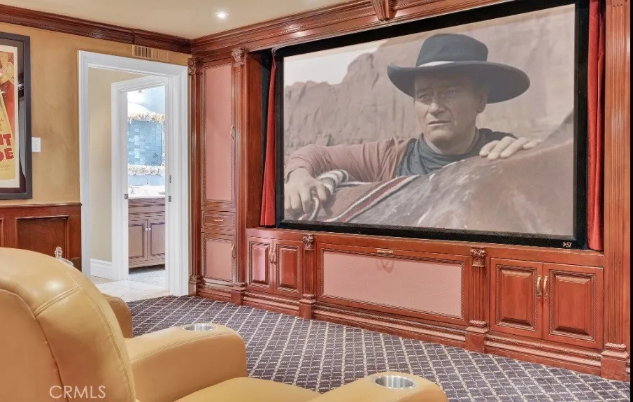 Welcome to 16 Saddle Road, a private, resort-style escape set on a rare 21,383 sq ft lot, where timeless craftsmanship meets cutting-edge luxury in one of Rancho Palos Verdes’ most coveted enclaves. From the moment you arrive the warm cedar siding, classic slate roof, and manicured coastal landscaping set the tone. Inside, artisan details and premium materials define every space. High vaulted cedar wood ceilings create a dramatic yet inviting atmosphere, complemented by smooth Venetian plaster walls, custom solid hickory wood floors, and custom interior solid hardwood doors crafted from fine Honduras wood. The home’s thoughtful design offers 5 bedrooms and 5 full baths, including a dedicated, fully customized private office suite—complete with its own bathroom, balcony, built-in cabinetry, TV, and custom desk—which can easily function as a fifth bedroom or luxurious guest quarters.The gourmet kitchen is a true showpiece, equipped with top-tier Thermador, Miele, Wolf, and Sub-Zero appliances, custom cabinetry, and an oversized island ideal for entertaining. Throughout the home, a high-end Lutron lighting system and integrated audio with in-ceiling speakers and individual controls elevate both convenience and ambiance. For the ultimate entertainment experience, a fully dedicated, soundproof home theater features a 120' screen powered by 7.2 surround system with high-end built-in speakers and eight electric, power-reclining leather chairs—delivering a true cinematic environment in the comfort of your own home. The primary suite offers a serene retreat, complete with a spa-inspired bathroom featuring a Jacuzzi soaking tub and a luxurious steam shower, along with a custom cedar walk-in closet and cozy fireplace for added comfort. Step outside to your private backyard oasis—designed for both relaxation and entertaining—with an island-style pool and spa, waterslide, and intuitive indoor controls. The outdoor kitchen is fully equipped for hosting, including a premium Lynx grill setup and a wood-burning brick pizza oven, perfect for alfresco dining and unforgettable gatherings. This home is as intelligent as it is beautiful, featuring 52 high-end American-made solar panels. From its bespoke finishes to its resort-caliber amenities, 16 Saddle Road is more than a home—it’s a lifestyle. Whether you’re entertaining on a grand scale or enjoying a quiet evening under the stars, this extraordinary property offers a living experience that is truly without compromise.