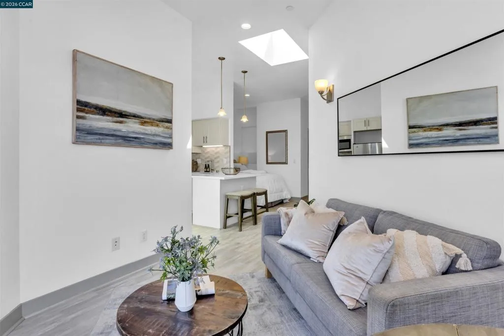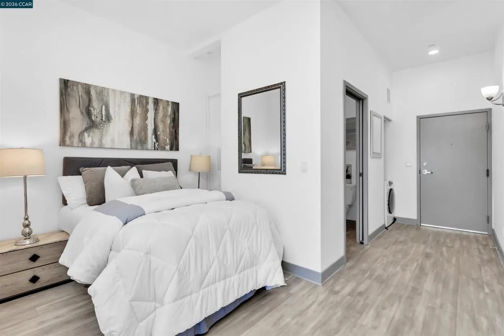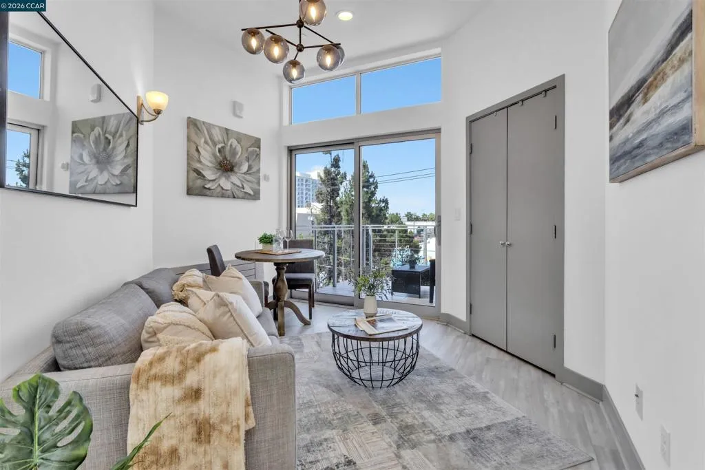 Modern Oakland living with soaring ceilings and abundant natural light. This thoughtfully designed residence features an open layout, oversized windows, and seamless indoor-outdoor flow to a private balcony. The sleek kitchen offers contemporary cabinetry, stainless steel appliances, and stylish finishes, while the airy living space creates a bright and inviting atmosphere. Residents enjoy access to a rooftop BBQ area—perfect for entertaining or relaxing with city views. All just a 5 minute walk from the vibrant energy restaurants and ferry at Jack London Square.