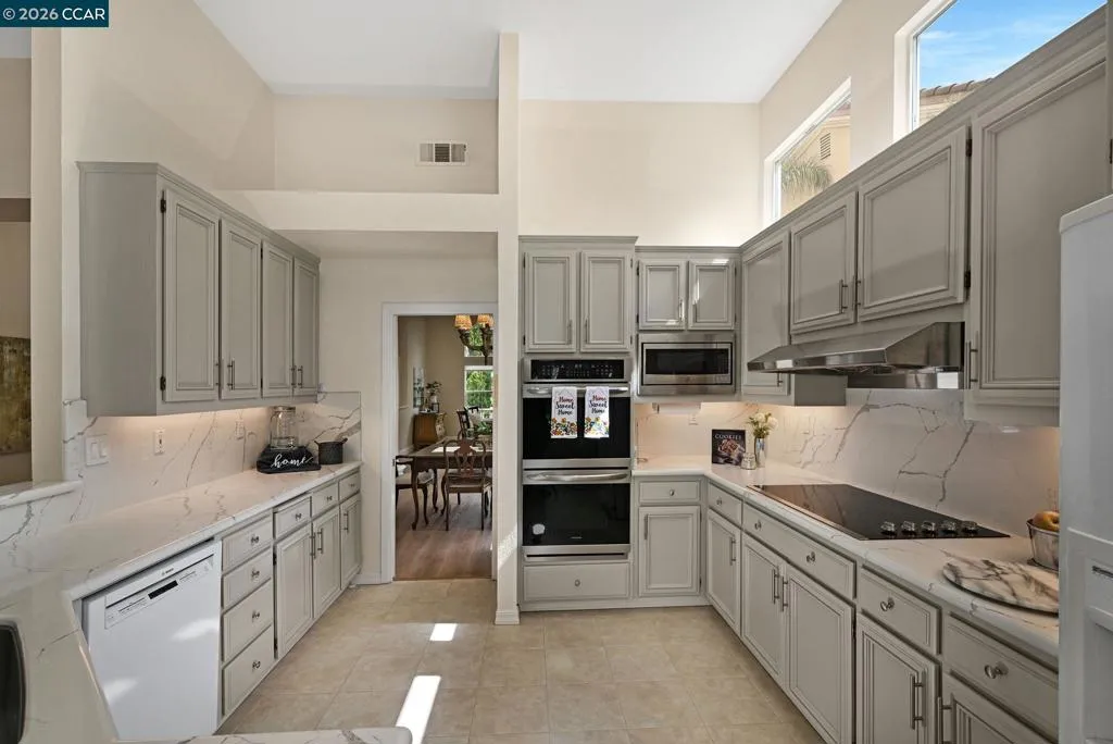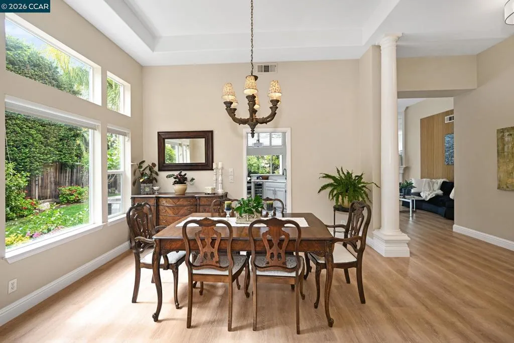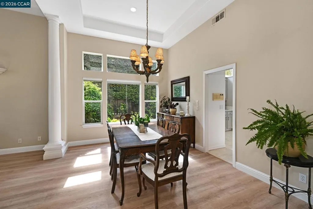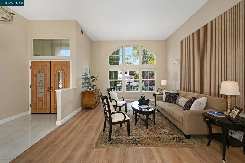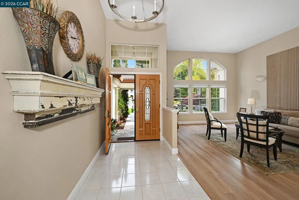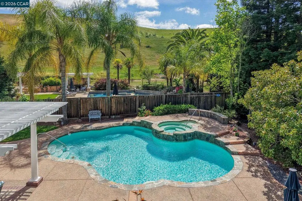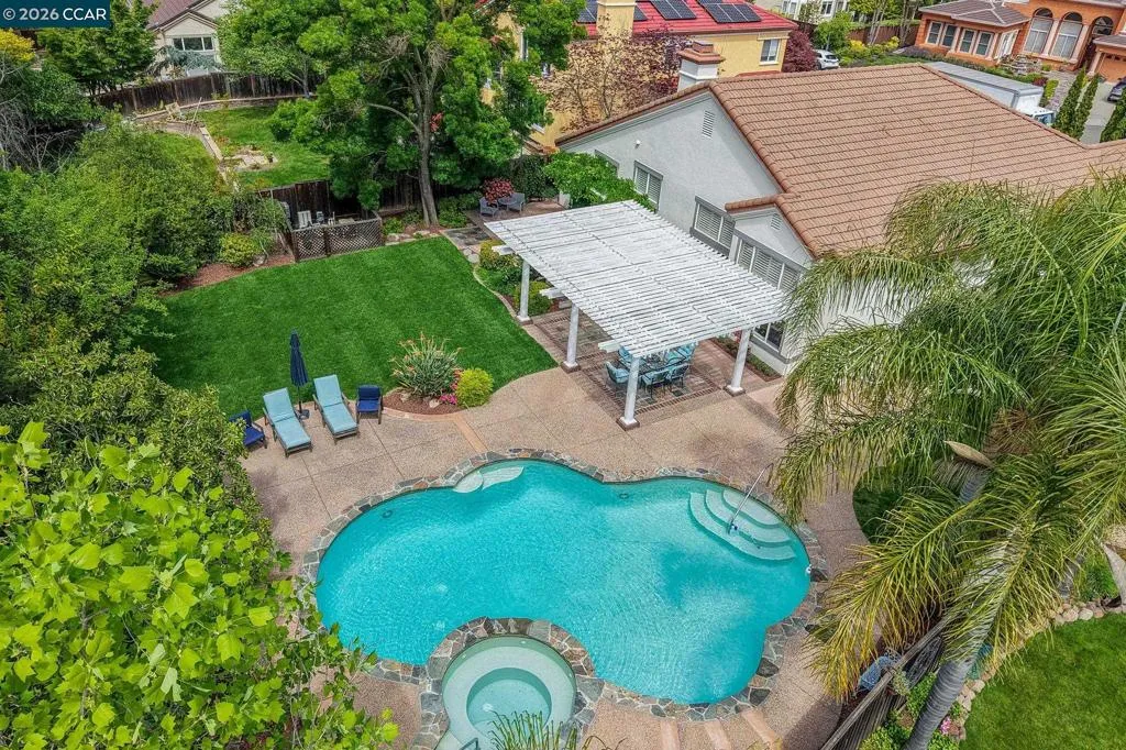A rare single story gem in the sought after Alta Mira community of San Ramon. This stunning home is the only single story home in the neighborhood which sits on one of the largest lots—over 12,800 sq ft (.29 acre). Tucked at the end of a court and located toward the back of the community, this home offers 4 bedrooms, 2 baths, 3 car garage and over 2,500 sq ft of living space. The entry welcomes you with soaring 12’ ceilings, a spacious living room, and an elegant dining area. The eat-in kitchen features Quartz countertops, stainless steel appliances, dual ovens, wine cooler, and a breakfast bar that opens to the family room with newer flooring, fireplace, abundance of natural light and slider leading to a fabulous backyard. Step outside to your private, park like retreat—complete with pergola, sparkling pool and spa, new lawn, professional landscaping, and an array of rose bushes. The large backyard has numerous possibilities, such as an ADU, outdoor kitchen, play area and much more. Multiple sitting areas offer the perfect backdrop for entertaining or unwinding while enjoying serene views of the hills. And, there are no HOAs in Alta Mira. Close proximity to highly ranked schools (assigned to Dougherty Valley HS), trails, shopping, dining & much more. Open Sat 4/18 & Sun 4/19 1-4