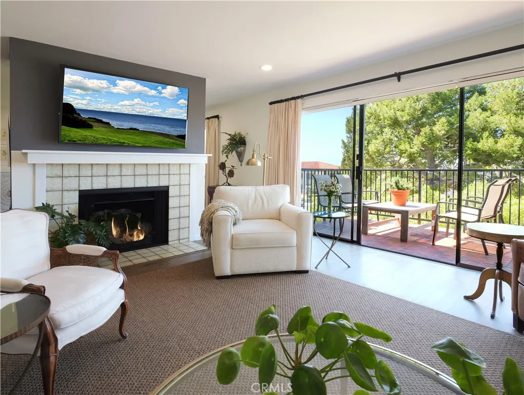 Nestled in the heart of Lunada Bay, this stunning one-level condo is located at the highly coveted "Villa Carrillo Jardin". Featuring 2-bedrooms plus a den, 2 bathrooms and 1,764 square feet, this light infused corner unit is the one you've been waiting for! Enjoy ocean & sunset views from Catalina to Malibu from the living room and spacious balcony overlooking the charming Lunada Bay Park & Plaza. The gourmet kitchen has been tastefully remodeled and features quartz countertops, a built-in Sub-Zero fridge, Bosch dishwasher, wood cabinets, a large pantry with custom shelving, laundry area and another balcony that is perfect for dining al fresco. The exquisite primary suite has 2 supersized mirrored closets, ceiling fan and a remodeled bathroom with designer mosaic tile flooring. Enjoy the large dining room that's centrally located and perfect for entertaining. Other amenities include high ceilings, recessed lighting, custom shutters and sunshades, paneled doors, luxury vinyl plank flooring, new heater and a dual fireplace in the living room and den. Villa Carrillo Jardin is a quaint community of only 9 units with elevator access from the subterranean garage to all levels. There are two designated parking spaces (#17 and #18) along with 2 storage closets. Ideal location on the beautiful Palos Verdes Peninsula - nearby award winning PVPUSD schools, coastal ocean bluffs and just a few steps from all the lovely shops and restaurants in Lunada Bay Plaza. Don't let this one get away!