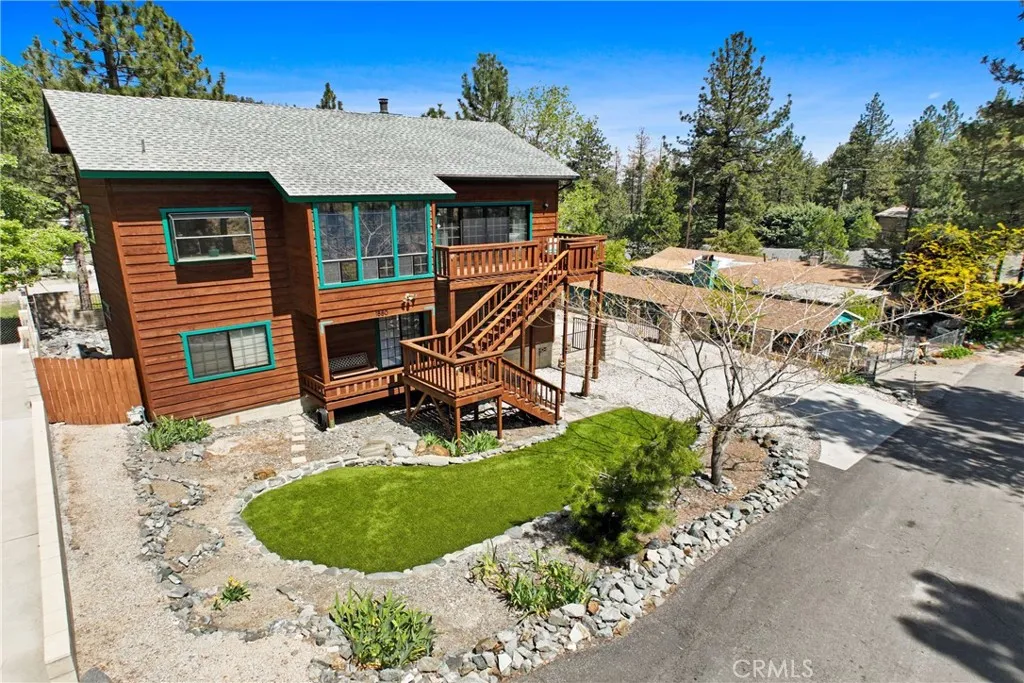 Welcome to Wrightwood! This beautiful mountain-view “bird-street” home showcases true pride of ownership and complete privacy. Enjoy stunning mountain views, abundant natural light, and an open-concept floor plan with scenic vistas from nearly every window. The gated driveway entry adds to the home’s privacy and curb appeal, equipped with a rare oversized attached two-car garage with generator hookup. The main living area features a cozy wood-burning stove and opens to a private back deck perfect for relaxing or entertaining. The kitchen includes a breakfast bar, dining area, and newer stainless steel appliances. The upstairs also features a half bathroom. Downstairs offers three bedrooms, two bathrooms, and a laundry room. The primary suite features a remodeled bathroom (2023) with an oversized walk-in shower and linen cabinet. One secondary bedroom or office includes its own private deck access. Behind the garage is a shed with power ideal for your workshop or utility room! Recent upgrades include a RainSoft reverse osmosis system, Rheem water softener (2024), water heater (2020), dishwasher (2021) and new ceiling fans and light fixtures (2025). Additional improvements: septic tank (2015) and resealed back deck (2019). A rare opportunity to own a private mountain retreat in an unbeatable location
