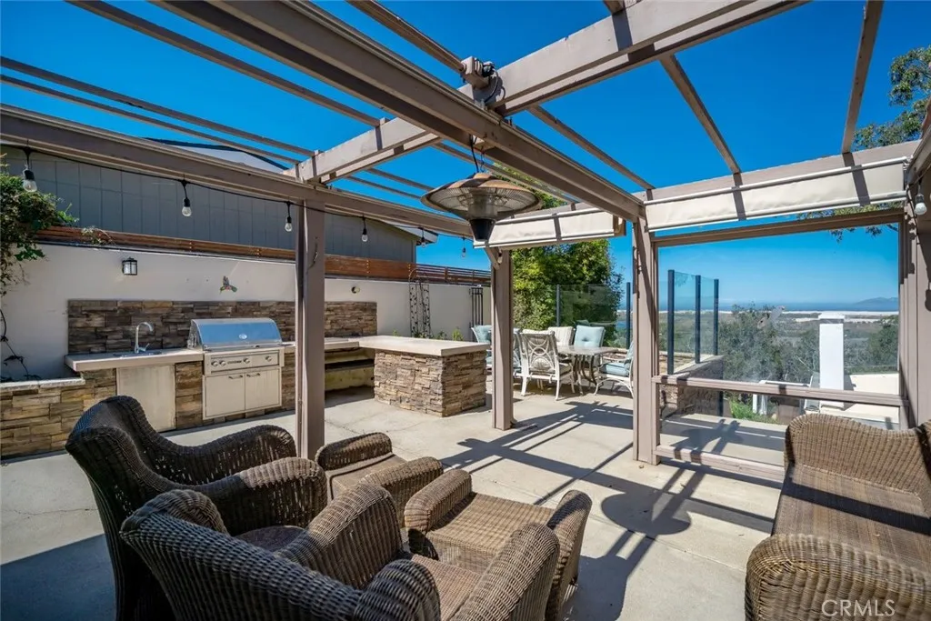 Unmatched panoramic ocean views define this extraordinary 2.5-acre gated estate—arguably one of the most breathtaking vantage points on the Central Coast. Perched at the end of a private road on the Mesa, 2840 & 2830 Kip Lane showcase sweeping views of the Pacific, dunes, coastline, and city lights from nearly every room. From sunrise to sunset, the ever-changing horizon creates a truly unforgettable setting. The 3-bedroom, 3.5-bath main residence blends warmth and sophistication with wood floors, expansive windows, and light-filled living spaces designed to frame the views at every turn. The kitchen features granite countertops, a center island, walk-in pantry, and updated appliances—ideal for both everyday living and entertaining. The primary suite offers a fireplace, spa-inspired bath, and stunning vistas, while a flexible office/media room and separate lower-level living space provide ideal accommodations for guests or extended stays. A private 2-bedroom, 2-bath guest house includes its own kitchen, patio, horse corrals, and a two-car garage—perfect for multi-generational living, rental income, or hosting in style. Outdoor living is elevated with multiple viewing areas, expansive balconies, and an outdoor kitchen—all designed to capture the dramatic coastal backdrop and unforgettable sunsets. Opportunities like this are rare. With two parcels, ultimate privacy, and some of the most commanding views on the market, this is more than a home—it’s a legacy property. Schedule your private tour and experience it in person.