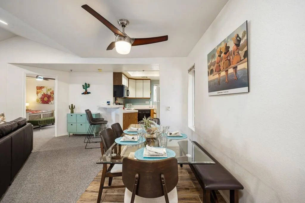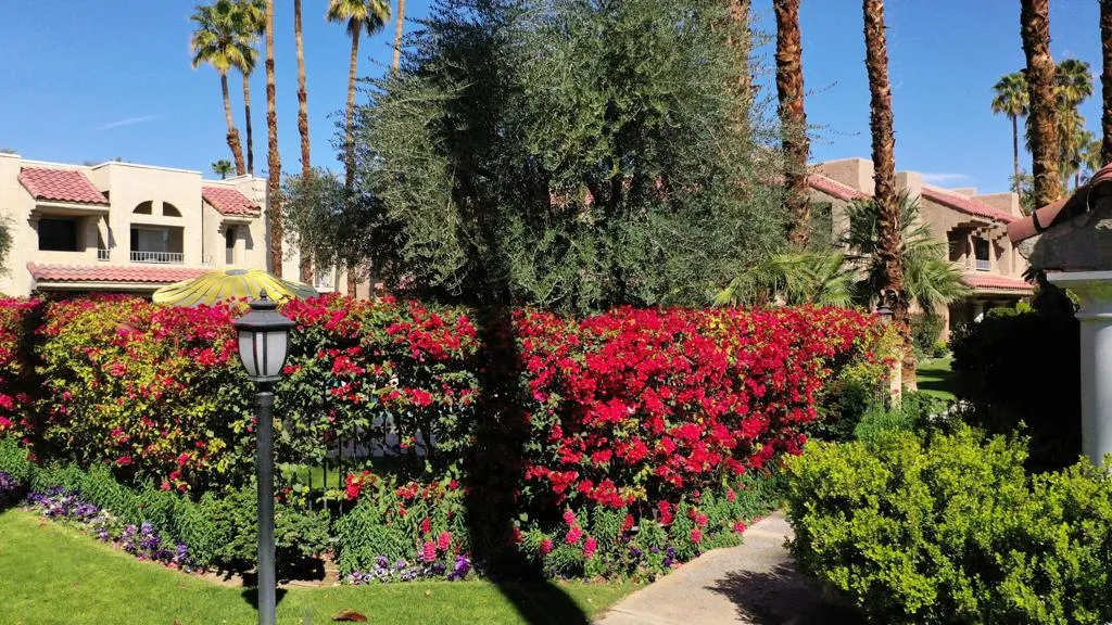 Looking for the ideal South Palm Springs get-away? Look no further. Get ready to enjoy Esprit - a secure gated community. Wonderful location in the complex, second floor end unit with mountain views from the patio and near the main pool area. You will love this fully furnished, upgraded, and immaculately maintained condo. Featuring an open interior and vaulted ceiling, the spacious great room is the perfect place to kick back and relax. Fully equipped kitchen with several eating areas. The bedrooms are separated with mirrored closets, and each offers an en-suite bathroom for added privacy. In-unit stackable washer and dryer, and two peaceful patios, one with a BBQ. The community offers a resort feel with scenic mountain views, lush landscaping, two pools, three spas, two lighted tennis courts, pickle ball, & carport parking. Down the street you will find the Tahquitz Creek public golf course and just a few blocks away is the Target/Trader Joe's shopping center. Popular community for snowbirds and seasonal rentals. Perfect for full-time living, a vacation retreat, or investment property.