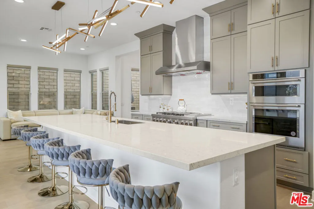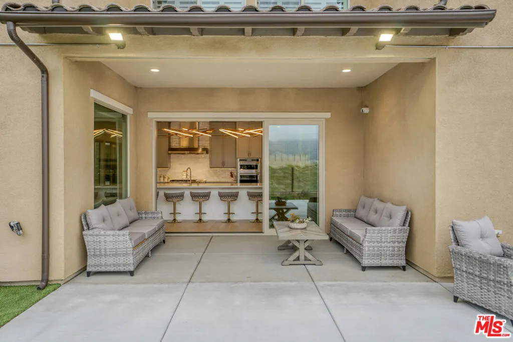 Experience elevated living in the highly sought-after Horizon at Deerlake Ranch with this stunning Marsala floor plan offering modern sophistication, thoughtful design, and beautiful city and mountain views. Designed for both everyday living and effortless entertaining, the open-concept layout features an expansive great room with surround sound speakers that flows seamlessly into a gourmet chef's kitchen, complete with a large center island, high-end appliances, sleek modern finishes, stunning designer lighting, upper cabinetry, and an oversized walk-in pantry. A three-panel sliding door enhances indoor-outdoor flow, opening to the California Room featuring a retractable shade for added privacy and comfort.The dramatic entry welcomes you with gorgeous 20-foot ceilings, creating an impressive sense of scale and openness, complemented by a striking staircase and custom wood paneling. European Oak hardwood flooring throughout adds warmth and sophistication, while the home's beautiful orientation and elevation further enhance its appeal.Featuring a desirable bedroom and office on the first floor, this home offers flexibility for guests, multigenerational living, or a private workspace. Upstairs, a spacious loft offers flexible living space ideal for a media room, office, or additional lounge area. The luxurious primary suite serves as a private retreat featuring dual vanities, a spacious walk-in shower, and a separate soaking tub. Generously sized secondary bedrooms offer roomy closets, complemented by a shared hall bath and conveniently located upstairs oversized laundry room.Additional highlights include a spacious 3-car garage with epoxy flooring and garage AC, rain gutters, fully automated smart home system, and 12 hard-wired security cameras with 24/7 recording for enhanced security and peace of mind. The home also features a backup power system with dual-line Generac generator, custom window coverings throughout, contemporary finishes, and stunning mountain and city views that enhance the home's elevated setting.Situated within Horizon at Deerlake Ranch, which features larger homesites compared to the nearby Skyline collection, this home offers both space and privacy in a premier community. As a resident of Deerlake Ranch, you'll enjoy access to resort-style amenities, including a stunning pool with breathtaking city and mountain views and a private clubhouse.Ideally located just minutes from Sierra Canyon School, premier shopping and dining, golf courses, and major hospitals, this home offers the perfect blend of luxury, comfort, and convenience. Don't miss this exceptional opportunity to own in one of Porter Ranch's most desirable communities.
