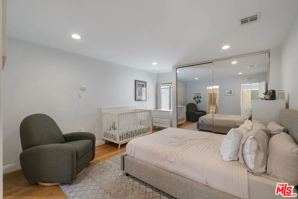 Sensational, light-filled architectural masterpiece in the heart of Brentwood. This front-facing townhome, part of an exclusive four-unit complex, was designed by renowned architect Michael Pearce & Associates and featured in Global Architecture and Homes Magazine. Offering 1,731 sq ft of contemporary elegance, the home showcases an open, sun-drenched floor plan with soaring ceilings, abundant windows, a dramatic skylight, and beautiful hardwood floors. The spacious dining area flows seamlessly into the inviting living room with a cozy fireplace, perfect for both entertaining and relaxing. The chef's kitchen impresses with a large center island, stainless steel appliances, and a spacious pantry, while the private patio provides an ideal space for outdoor living. Upstairs, two bedrooms and two bathrooms offer comfort and privacy. The primary suite feels like a serene retreat, featuring a walk-in closet and a luxurious spa-inspired bathroom with a marble dual vanity. The second bedroom includes its own ensuite bath. Additional highlights include an in-unit laundry area, an exclusive rooftop deck with stunning city and mountain views, and two side-by-side parking spaces plus a large private storage area in the garage.