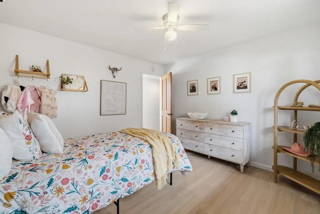 Situated on a spacious lot with spectacular 270-degree views of the Santa Cruz Mountains, this 3bed/2bath home offers outstanding curb appeal. An inviting front porch and a long driveway - providing ample parking and a comfortable setback from the street - contribute to a welcoming sense of arrival and privacy. Generous windows throughout flood the home with natural light, blurring the line between indoors and out for that quintessential California living feel. The thoughtfully designed floor plan allows each room to flow seamlessly into the next. The primary suite features a private entrance to the backyard, perfect for easing into mornings with a cup of coffee. The en suite bathroom is anchored by an oversized soaking tub, ideal for unwinding after a long week. The backyard was made for entertaining, complete with a pergola for al fresco dining and a generous lawn for yard games. Located in the desirable Santa Cruz Gardens neighborhood, the home is just minutes from world-class outdoor recreation, excellent restaurants, major commute routes, and the stunning beaches of Santa Cruz.