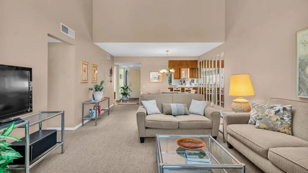 This beautifully maintained 2 Bedroom 2 Bath is move-in ready and fully furnished. This condo offers a perfect blend of comfort and convenience to downtown Palm springs, local shopping and restaurants. Unit upgrades include replacement windows and sliding glass doors, along with a newer A/C unit for added efficiency. A private garage and in-unit laundry too ! All this in a gated community, including six pools, six spas, tennis/ pickleball courts, and a clubhouse. Pride of ownership is evident throughout, making this an ideal option for a full-time residence, seasonal retreat, or investment opportunity. Come see this one today !