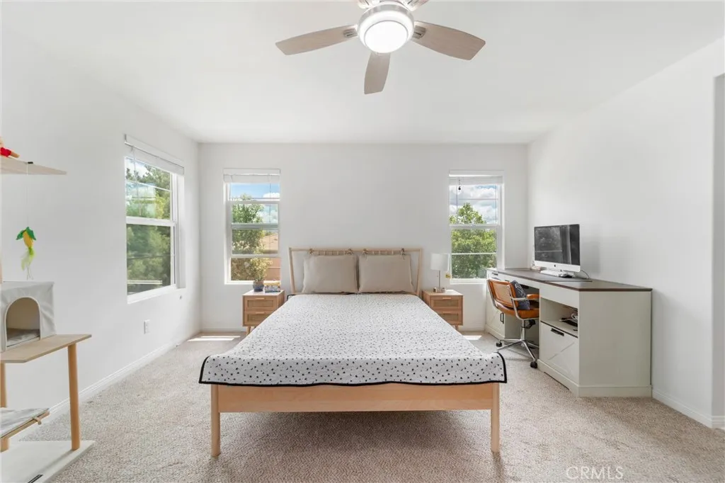 Welcome to this beautifully maintained single family detached home (no common walls) located in the quiet, gated Seneca community in Murrieta, offering low taxes and exceptional comfort. Boasting approximately 1,941 sq ft of living space, this home features 3 bedrooms, 2.5 bathrooms, and a spacious loft—perfect for a home office, media room, or flexible living space. The open concept main level showcases a bright living and dining area that flows seamlessly into a well appointed kitchen, complete with upgraded appliances, granite countertops, a pantry, and crisp white cabinetry. Upstairs, the primary suite offers a relaxing retreat with dual walk-in closets, double vanities, a separate shower, and a soaking tub. Two additional bedrooms feature mirrored closet doors and share a generously sized bathroom. A convenient upstairs laundry room with built-in storage cabinets adds to the home’s functionality. Enjoy outdoor living in the low maintenance backyard, featuring a private patio area ideal for entertaining, with no rear neighbors for added privacy. The attached two-car garage includes a 220V EV charger. This energy-efficient home is equipped with dual HVAC systems, a tankless water heater, and solar panels for enhanced comfort and savings. Ideally located within walking distance to Alta Vista Elementary School and just minutes from shopping, dining, and easy freeway access. A perfect blend of comfort, efficiency, and convenience—don’t miss this opportunity!