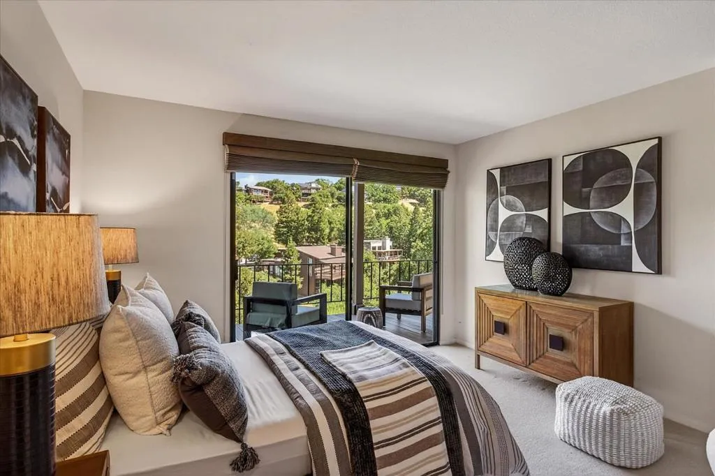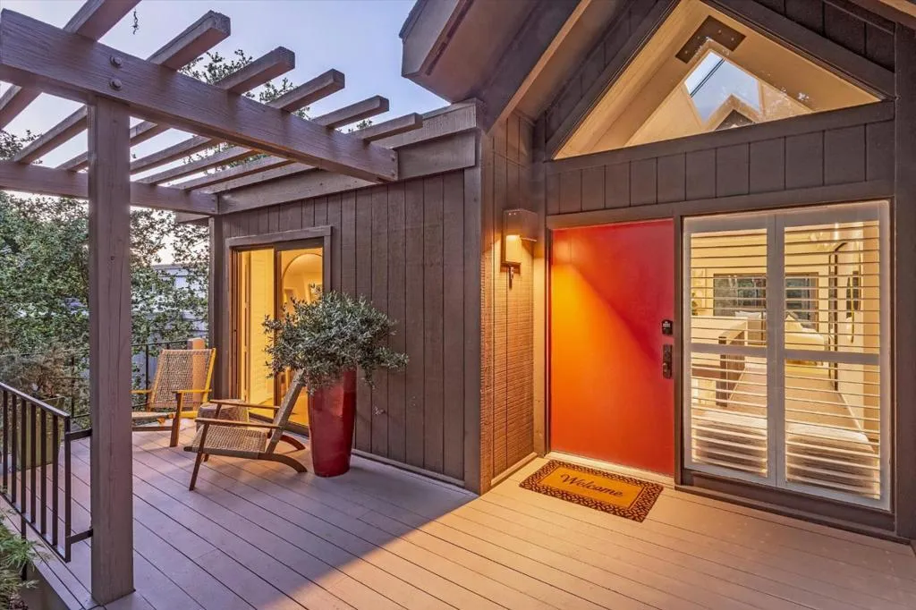 Far-reaching views of Coal Mine Ridge define this beautifully remodeled home at Portola Valley Ranch, set on nearly one-half acre. Expanses of glass, soaring ceilings, and dramatic skylights fill the interiors with light and volume, while fine hardwood floors underscore a cohesive, modern aesthetic throughout the open main level. Indoor-outdoor living extends across both levels with expansive decks positioned to take full advantage of the natural surroundings. The primary suite with a spa-inspired remodeled bath is conveniently located on the main level and the lower level provides a family room, flexible-use room, and two additional bedrooms and a bath. Adding to the appeal is a full complement of amenities at The Ranch, including pools, tennis courts, a fitness center, vineyard and garden areas, a playground, and miles of scenic trails. A wonderful opportunity to enjoy a close connection to nature with convenient access to both San Francisco and Silicon Valley.