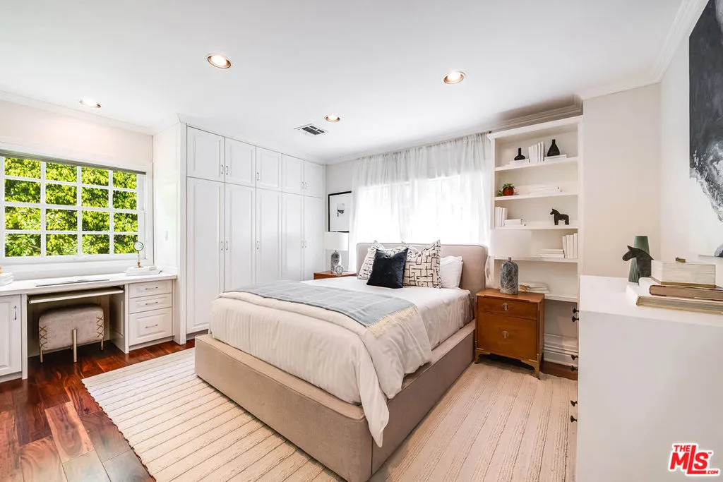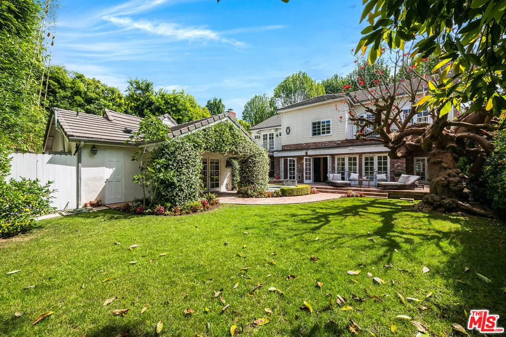 Spanning almost 4,800 square feet, including a fully permitted 558-square-foot ADU, this exceptional traditional residence offers a rare five-bedroom, six-bath compound on one of Holmby Westwood's most coveted streets. Beautifully positioned on a flat lot along prestigious, tree-lined Loring Avenue, the residence showcases refined detailing throughout, including crown moldings, hardwood floors, wainscoting, and French doors that open across the rear of the home to the expansive grounds. There are 4 second level bedrooms. The primary suite is a true retreat, featuring a sitting area with fireplace, French doors opening to a private balcony overlooking the garden, generous dual closets, and a luxurious step-down marble bath with vanity, soaking tub and separate shower. Three additional upstairs bedrooms each offer ensuite baths, providing comfort and privacy for family and guests. Designed for both elegant entertaining and relaxed daily living, the home features a grand formal living room with fireplace, formal dining room with bay windows, a sophisticated den or office with wet bar, and an inviting family room that flows effortlessly into the breakfast area and gourmet kitchen. The kitchen is appointed with marble countertops, high-end stainless appliances, a large pantry, and an oversized center island.The private backyard evokes the quintessential California lifestyle, with mature landscaping, brick patio, grassy lawn, spa, and an extraordinary 525-square-foot covered outdoor living area ideal for year-round entertaining, alfresco dining, and game-day gatherings. The detached ADU includes a sitting area, bedroom, and full bath, offering exceptional flexibility for guests, extended family, or a private workspace.Ideally located moments from Warner Avenue Elementary, Holmby Park, Century City, Beverly Hills, UCLA, and Westwood Village, this move-in-ready residence represents a rare opportunity to own an updated classic in one of the neighborhood's most prestigious settings.