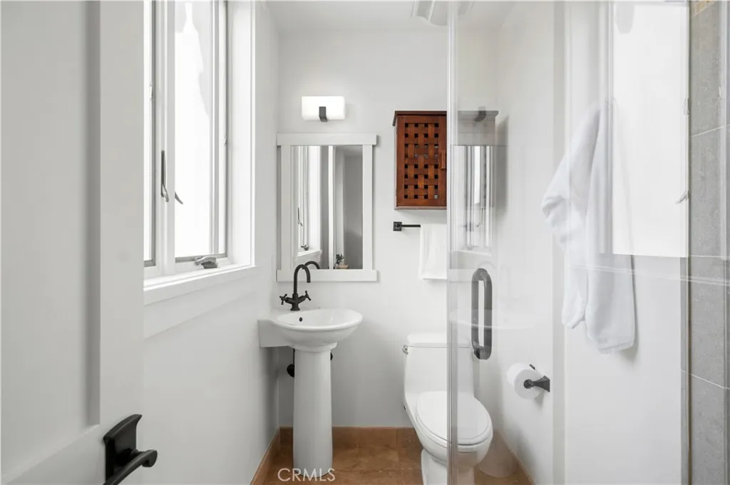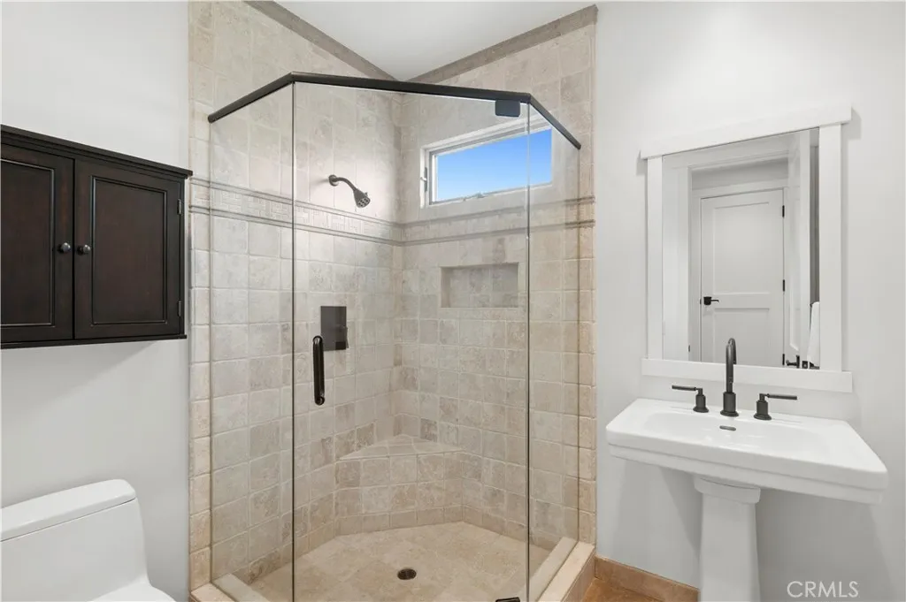 Perfectly positioned in the coveted 200 block just one home off Ocean Boulevard, this exceptional coastal residence offers 4 bedrooms and 4.5 bathrooms. Behind its sprawling 50-foot-wide facade, the home presents a sophisticated sense of scale and volume adorned by soaring high-paneled ceilings, rich wood flooring, and curated designer finishes throughout. Natural light filters across open living spaces, enhancing the warmth and elegance of every room. Highlighted by a fireplace, the great room is framed by disappearing glass doors that seamlessly extend into a front courtyard, blending indoor comfort with coastal ambiance and soft ocean views. Designed for elevated entertaining and everyday luxury, the dining room features a custom designer wallpaper accent wall, adding texture and artistry to the space. The adjacent chef’s kitchen is appointed with sprawling quartz countertops, a six-burner range, Sub-Zero refrigeration, a secondary integrated wall oven, water filtration, instant hot water, and a generous center island with a built-in beverage fridge and breakfast bar seating. Three secondary ensuite bedrooms include a highly desirable main-level en-suite bedroom with a walk-in shower, offering ideal flexibility for guests or extended stays, complemented by a well-appointed laundry room and abundant storage throughout. Spanning the width of the oversized lot, the primary suite showcases expansive views, an oversized walk-in closet, a fireplace dually serving a spa-caliber bath with a soaking tub, multi-head walk-in shower, dual vanity, and a privacy commode. Above, the rooftop deck captures sweeping coastal vistas stretching from the sands of China Cove to the Harbor Entrance, Catalina Island, and the iconic Wedge, offering an extraordinary backdrop for sunset gatherings or quiet coastal moments. A rare two-car side-by-side garage offers prized convenience in this coastal setting. Live the Corona del Mar Lifestyle and elevated coastal living just steps from Ocean Boulevard, local and famed dining and shopping, Blue Ribbon Schools, and world-class beaches.