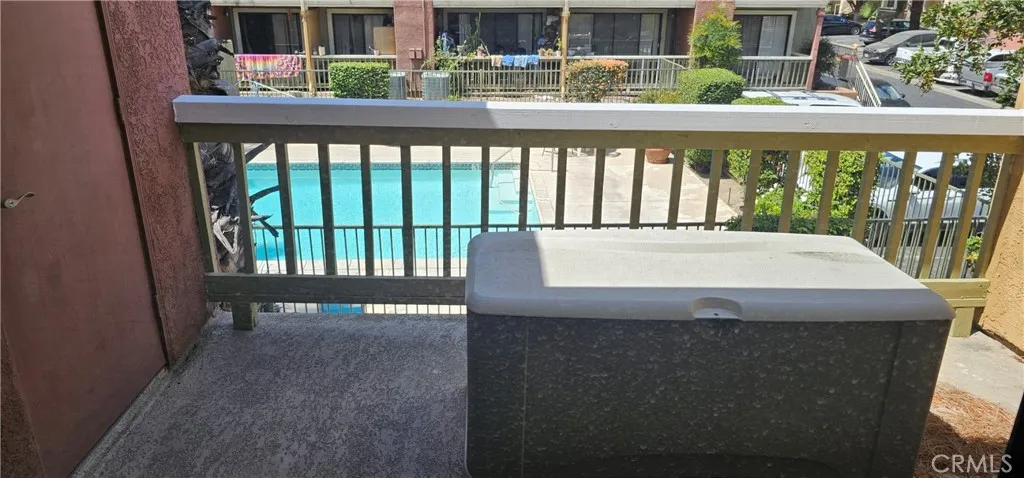 Beautiful 2-bedroom, 2-bathroom condo in gated Circle City Villas in Corona. Large bedrooms each with it's own bathroom and newer carpet. Satinless steel appliances in kitchen with tile floors, stackable washer and dryer combo in hallway. Bedroom balcony and living room deck overloking the pool. Central Air & heat. 2 assigned parking spaces one covered and one not covered. Close to Transportation and Shopping.