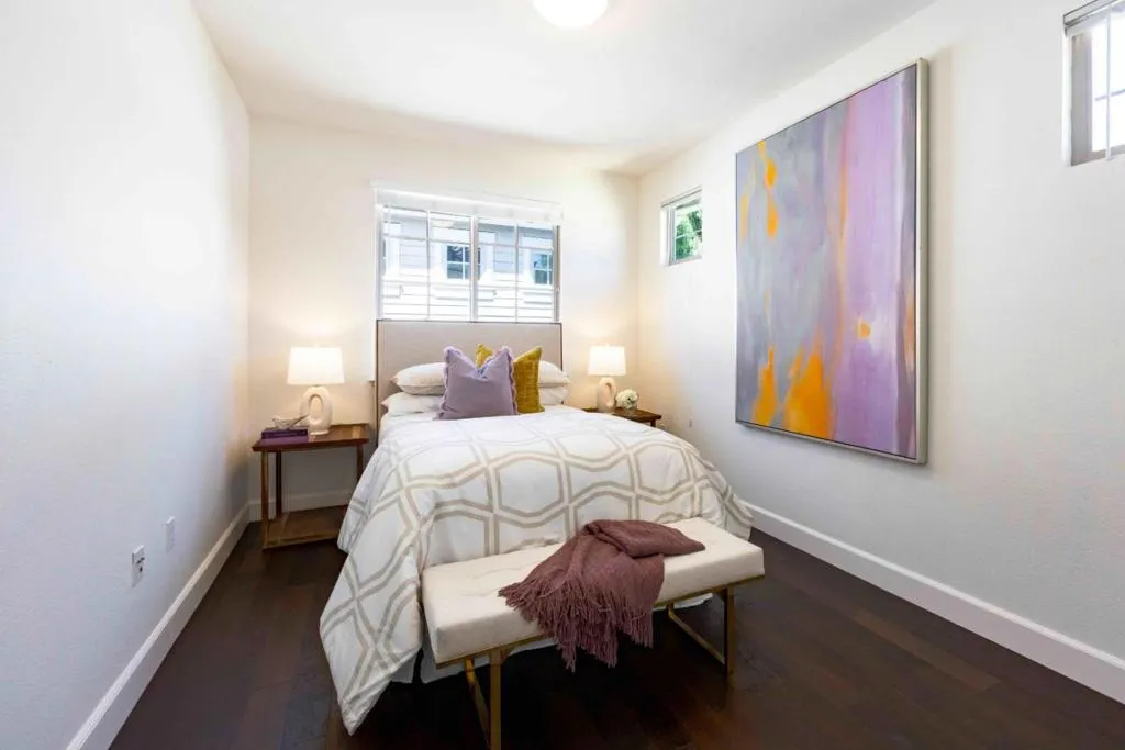 Perfectly positioned in the highly sought-after Allied Arts neighborhood, just moments from both downtown Menlo Park and downtown Palo Alto, this inviting home offers an exceptional blend of comfort and convenience. Spanning more than 1,800 SF across two levels, the home features richly hued engineered hardwood floors, soaring ceilings with integrated speakers on the main level, and a thoughtfully designed floorplan. Expansive living and dining areas flow seamlessly into a chef's kitchen with appliances from GE Profile and Kenmore Elite, while four bedrooms include a spacious primary suite. A back patio provides a serene space for outdoor enjoyment, complemented by air conditioning, a tankless water heater, and an attached 2-car garage with EV charging. All of this is just moments from premier shopping and dining, beautiful parks, key commute routes, and top-ranked schools including Oak Knoll Elementary, Hillview Middle, and Menlo-Atherton High (buyer to verify eligibility).