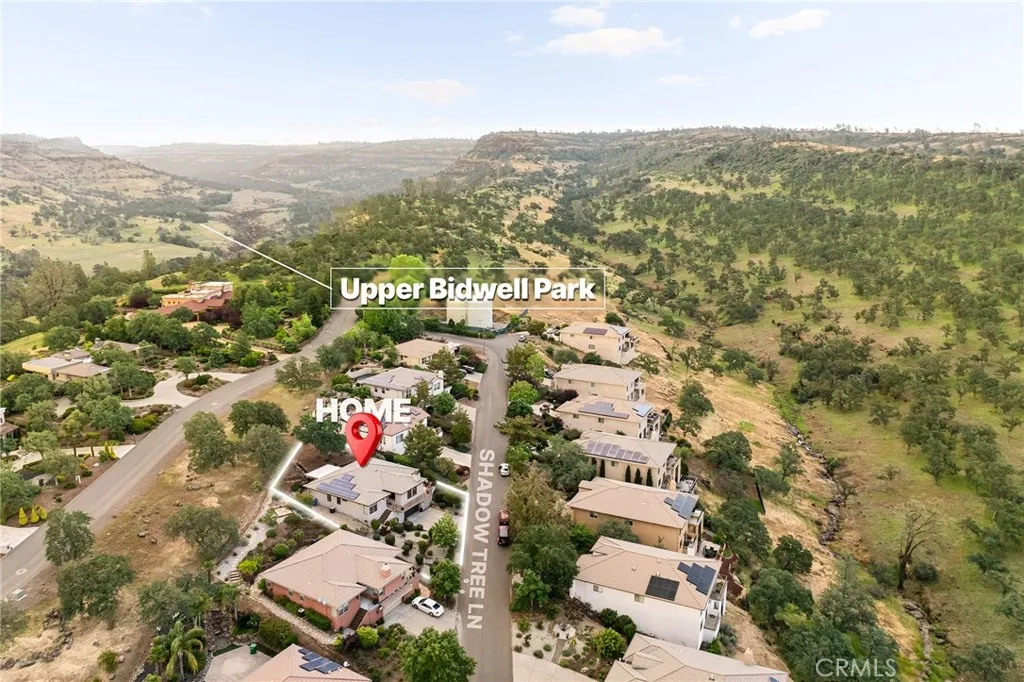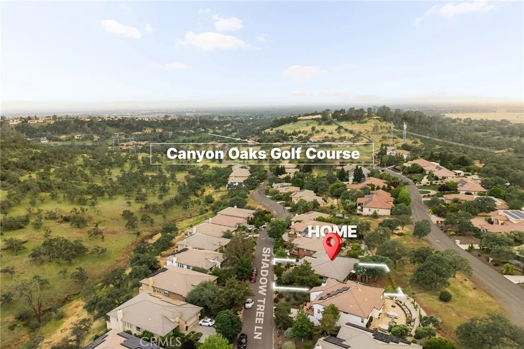 Welcome to Canyon Oaks where you can find this beautifully maintained home in a luxury golf community—why mow the lawn when you can go golfing instead! Fresh exterior and interior paint enhance this inviting 3 bed, 2 bath residence with a low-maintenance yard and exceptional outdoor living. Enjoy a raised front patio with hillside views, plus a private backyard retreat featuring a stunning waterfall cascading down the slope, stamped concrete, a spacious firepit area, and a pavilion with bistro lighting and smart-controlled lighting systems for effortless ambiance. Inside, the open floor plan showcases engineered wood flooring throughout the main living spaces. The family room offers warmth with its gas fireplace, raised hearth, built-in bookshelf, oversized windows framing the outdoor scenery, and a smart lighting system for customizable comfort. The kitchen is a chef’s delight with a generous island, abundant honey-toned cabinetry, granite counters, and a built-in gas stove. Off the kitchen is a large bonus room—an ideal flex space limited only by your imagination—with direct access to the backyard oasis. A spacious laundry room with extensive storage and a sink sits conveniently nearby. Guest bedrooms are thoughtfully positioned with a shared bath, while the private Primary Suite features double-door entry, a large walk-in closet, backyard access, and a spacious bath with walk-in glass shower, soaking tub, double vanity, and oversized window. The downstairs garage offers two-car parking plus workshop or golf cart space, measuring approx. 28.5' wide by 20' deep with a 16' x 8' door, and includes a wall-mounted golf cart charger outlet. Home is wired for sound inside and out and did I mention, OWNED 16-panel 4.4 KW SOLAR SYSTEM! Additional upgrades include a newer water heater, newer garage door opener, new outdoor stairs, pavers on both sides of the home, and upgraded living room shades and windows. Along with a gated entrance, the community benefits from roaming security patrols and direct contact access for added peace of mind. Rolling hill views, mature trees, and Upper Bidwell Park—just 600 feet away with miles of hiking trails—make this location a dream for nature lovers!! A remarkable home in a remarkable setting—your Canyon Oaks lifestyle awaits!