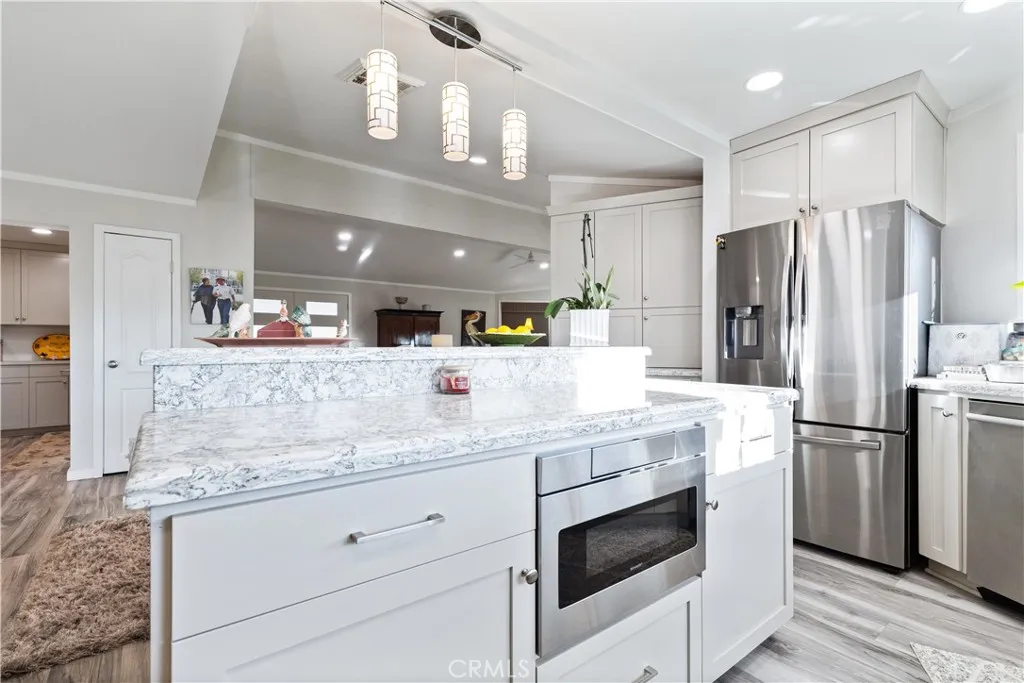 Welcome to your beautifully reimagined retreat in desirable Quail Run 55+ community, where comfort, style, and sweeping views come together effortlessly. Originally built in 1981, this thoughtfully upgraded 2-bedroom, 2-bathroom home has been extensively renovated within the past five years, offering the perfect blend of modern finishes and timeless charm. Step inside to discover a bright, open-concept living space designed for both relaxation and entertaining, seamlessly connecting the living room, kitchen, and formal dining area. The kitchen is a standout feature, showcasing elegant granite countertops, soft-close cabinetry, and ample workspace for the home chef. Just beyond, the formal dining room provides an inviting setting for gatherings, while the spacious layout ensures an easy, natural flow throughout the home. Both bedrooms are generously sized, with the primary suite offering comfort and privacy, complemented by a well-appointed en-suite bathroom. A large laundry room adds convenience and additional storage, enhancing everyday functionality. Adding to the home’s appeal is a detached two-car garage, providing ample space for parking, storage, or even a workshop setup, ideal for hobbies or extra organization. Step outside and enjoy the generous covered outdoor patio, perfect for morning coffee, evening relaxation, or entertaining guests while taking in the fresh air and surrounding scenery. Perched on one of the community’s most desirable elevated lots, this home captures truly breathtaking panoramic views. Enjoy twinkling city lights by night and serene vistas of the surrounding hills by day. It’s a rare opportunity to own a home that combines modern upgrades with an unbeatable setting. Experience low-maintenance living, scenic beauty, and a welcoming community, all in one exceptional property.