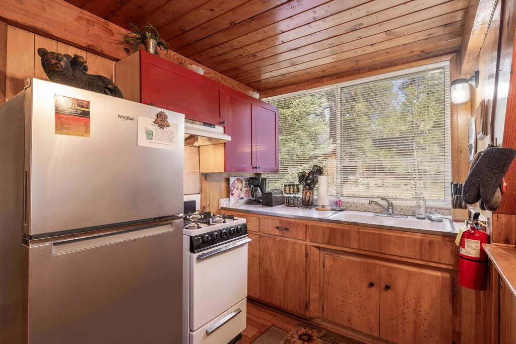 Located just across the street from the National Forest, this classic A-frame cabin offers the perfect mountain escape. Featuring 2 bedrooms and 1 bath on the main level plus a versatile loft area, the home captures the charm and character that make A-frame architecture so desirable. Situated on a 5,000 sq ft level lot, the property offers easy access and level parking. Outdoor patio areas and a relaxing hot tub create the ideal setting for enjoying Big Bear's fresh mountain air. Conveniently located near Bear Mountain Ski Resort, Snow Summit Ski Resort, the Moonridge Corridor shops, restaurants, Bear Mountain Golf Course, and the Big Bear Alpine Zoo, with grocery stores and the Big Bear Village just a short drive away. The home is offered furnished as shown and has been a successful short-term rental investment for the current owners. A great opportunity to own a mountain getaway while enjoying potential rental income. Enjoy four seasons of recreation and relaxation in beautiful Big Bear.