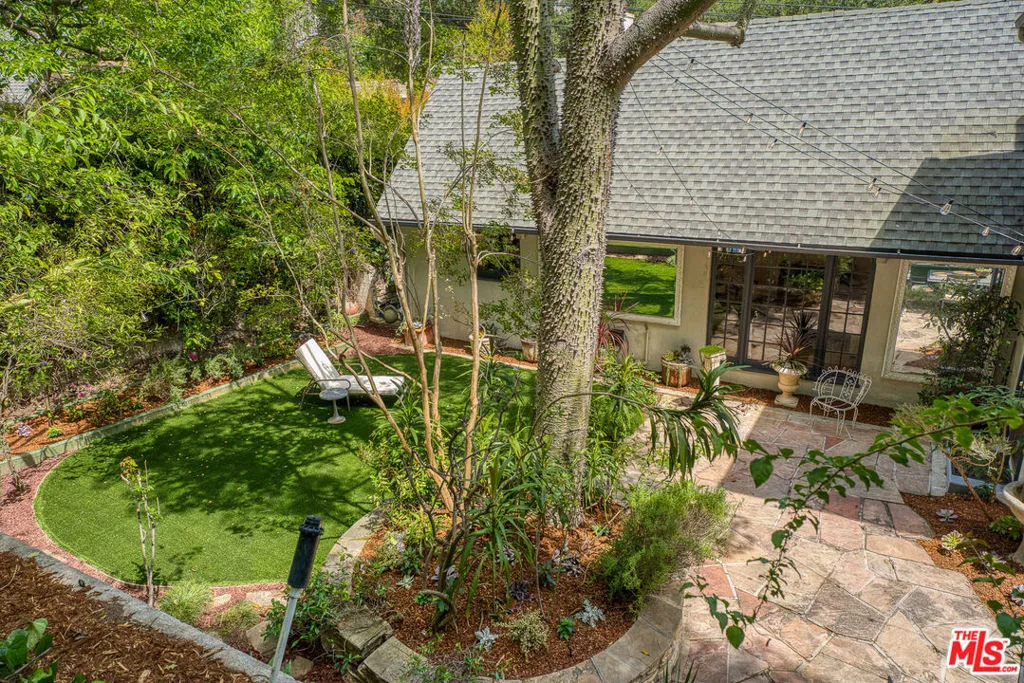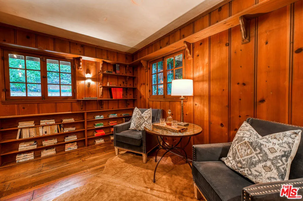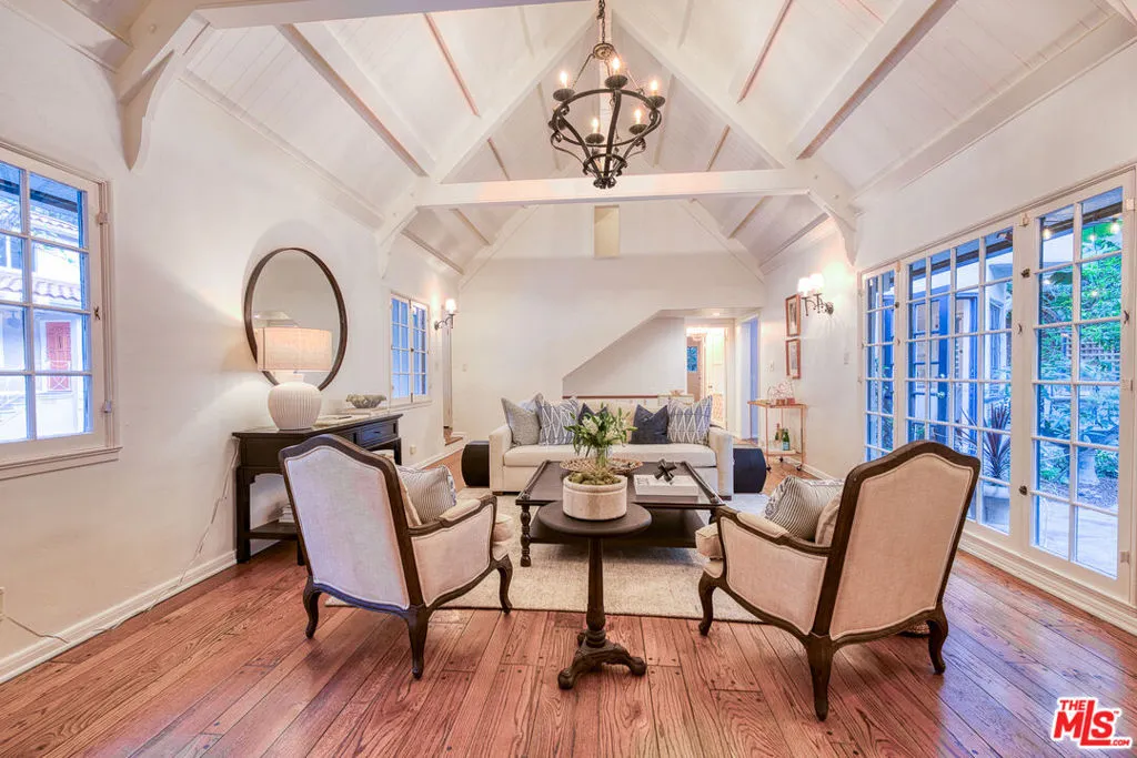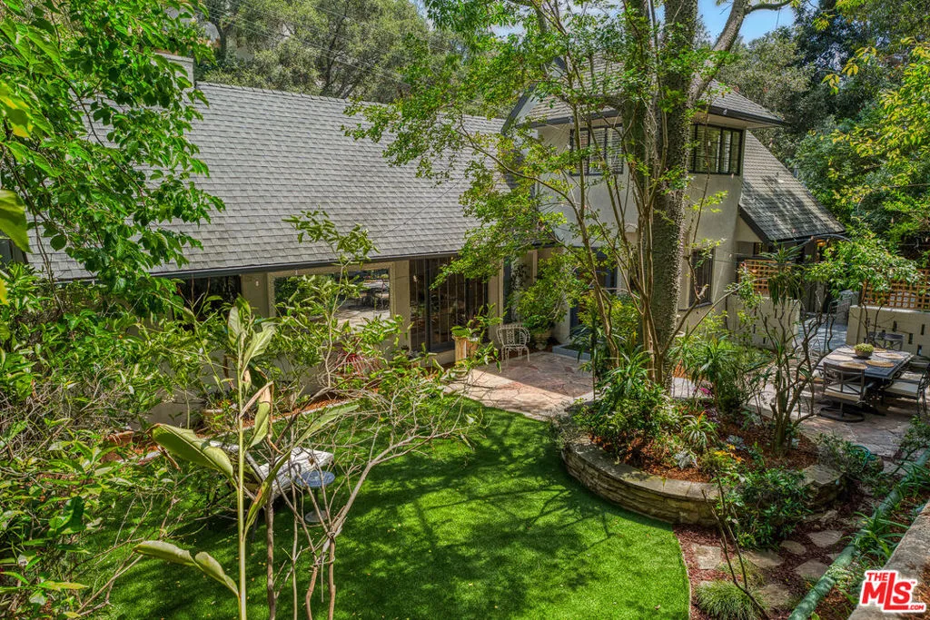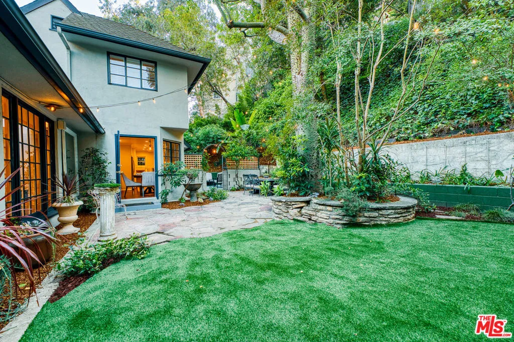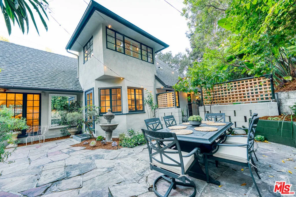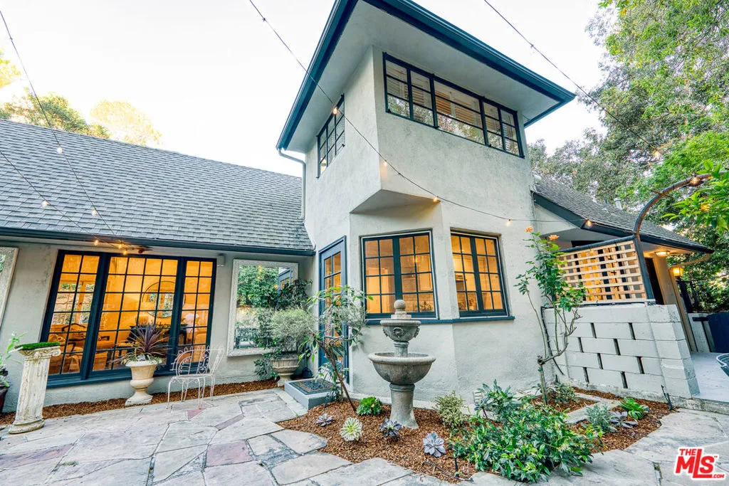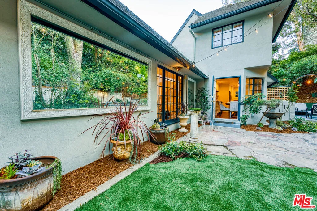 Tucked into the storied hills of Beachwood Canyon, 2933 Ledgewood is a stunning English Country Manor that feels worlds away from the city yet sits walking distance from the Hollywood Sign and the beloved village shops and cafes that make this neighborhood one of LA's most coveted. Spanning three thoughtfully designed levels, this 4-bedroom, 3-bath residence has been beautifully renovated to honor its original character while delivering every modern comfort. French windows flood the dramatic vaulted-ceiling living room with natural light, anchored by a wood-burning fireplace and flowing seamlessly into a wood-paneled retreat perfect as a home office or writer's sanctuary. The remodeled kitchen features stainless steel appliances, and refinished peg-and-groove hardwood floors run throughout all three levels, each with its own chic, updated bath. The master suite is a private world unto itself a dedicated fireplace, walk-in closet, and a sense of serene escape that's hard to find anywhere in the city. Step outside to a lush, tranquil backyard complete with a treehouse and al fresco dining space, ideal for both quiet mornings and memorable evenings under the canyon sky. Central A/C and heat. Parking for four cars. Laundry in garage. Character, charm, and a location that speaks for itself this is Beachwood Canyon living at its finest.