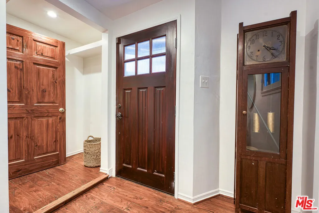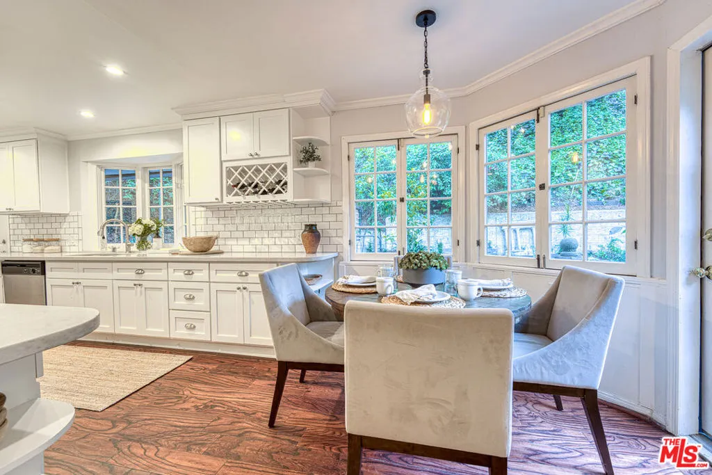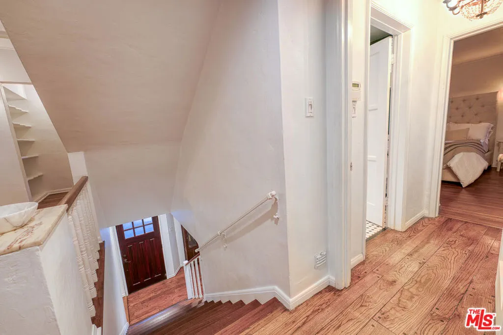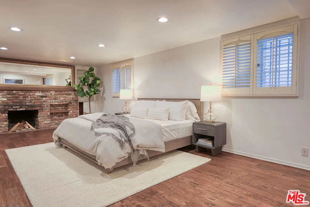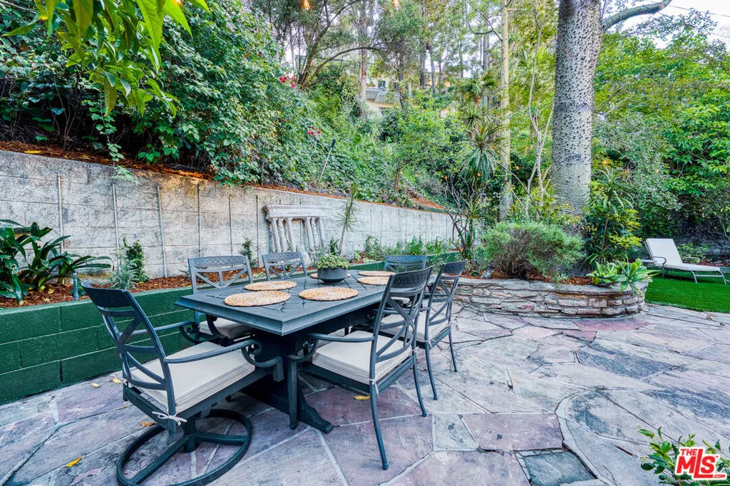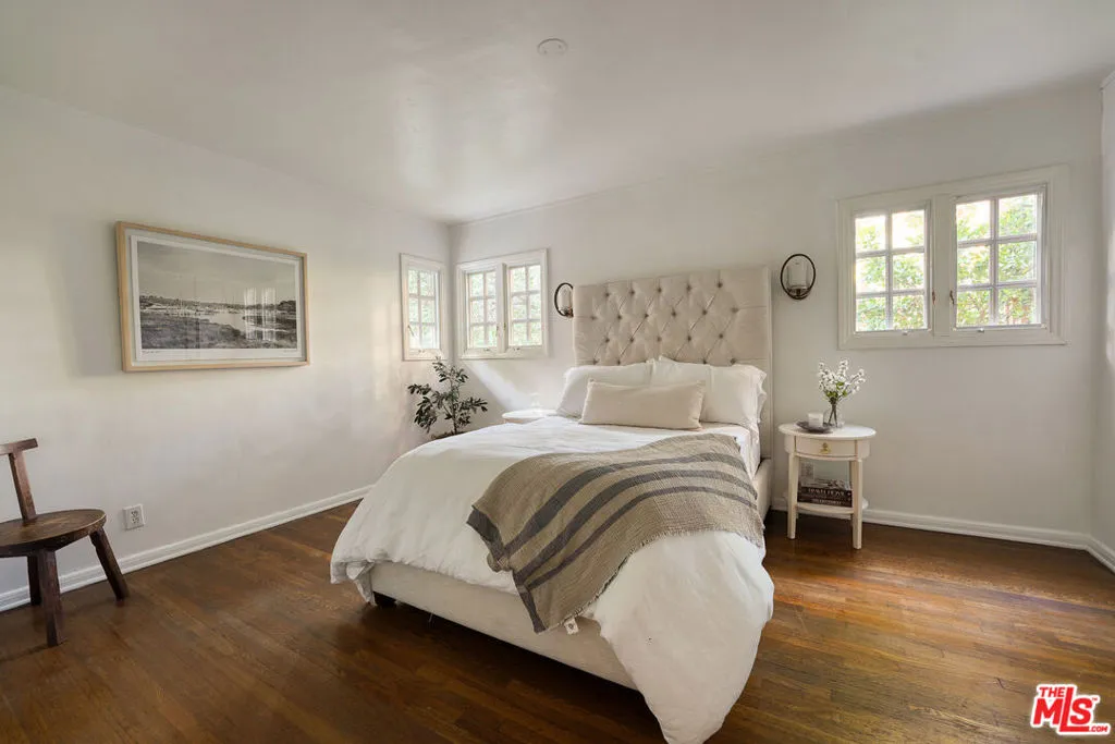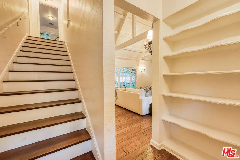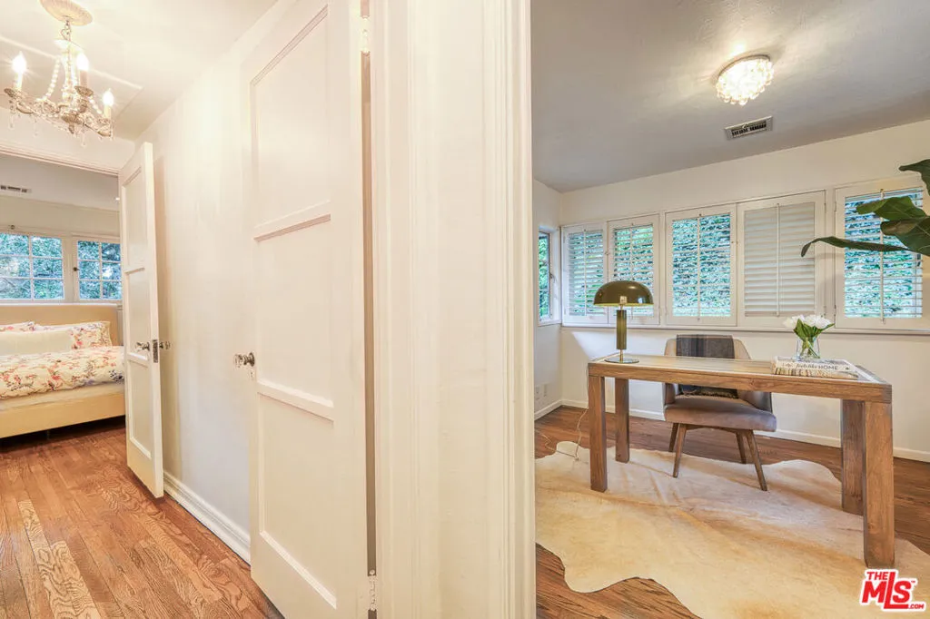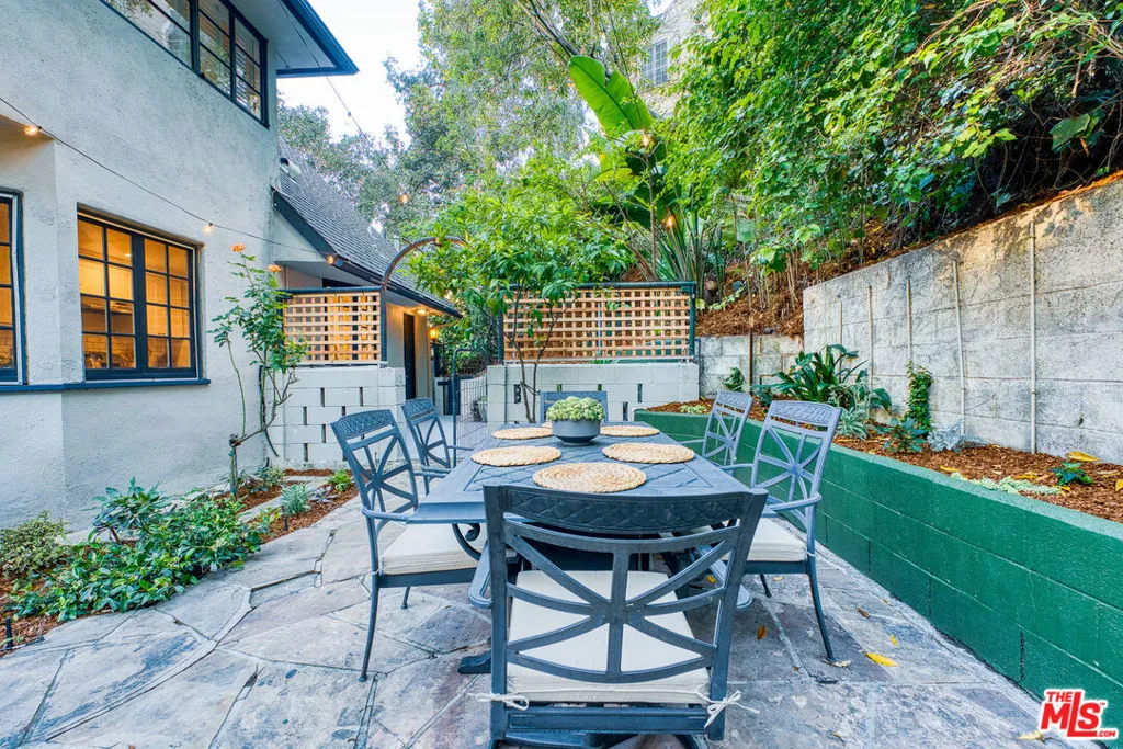 Tucked into the storied hills of Beachwood Canyon, 2933 Ledgewood is a stunning English Country Manor that feels worlds away from the city yet sits walking distance from the Hollywood Sign and the beloved village shops and cafes that make this neighborhood one of LA's most coveted. Spanning three thoughtfully designed levels, this 4-bedroom, 3-bath residence has been beautifully renovated to honor its original character while delivering every modern comfort. French windows flood the dramatic vaulted-ceiling living room with natural light, anchored by a wood-burning fireplace and flowing seamlessly into a wood-paneled retreat perfect as a home office or writer's sanctuary. The remodeled kitchen features stainless steel appliances, and refinished peg-and-groove hardwood floors run throughout all three levels, each with its own chic, updated bath. The master suite is a private world unto itself a dedicated fireplace, walk-in closet, and a sense of serene escape that's hard to find anywhere in the city. Step outside to a lush, tranquil backyard complete with a treehouse and al fresco dining space, ideal for both quiet mornings and memorable evenings under the canyon sky. Central A/C and heat. Parking for four cars. Laundry in garage. Character, charm, and a location that speaks for itself this is Beachwood Canyon living at its finest.