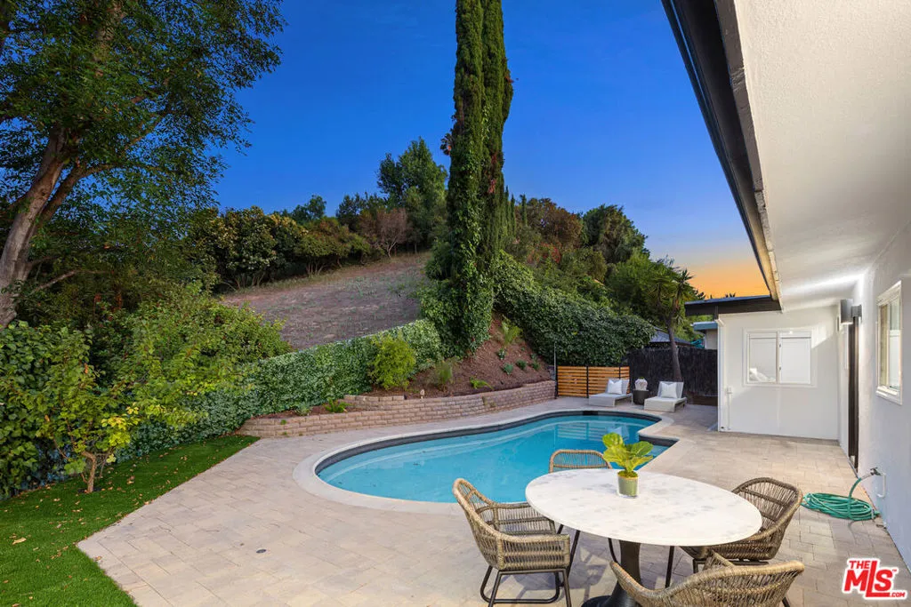 Welcome to this completely remodeled mid-century gem, nestled in the hills of Sherman Oaks. Thoughtfully updated while preserving its timeless character, this home seamlessly blends classic design with modern luxury.Featuring an expansive floor plan, the residence offers three spacious bedrooms and three beautifully appointed bathrooms. The open layout is filled with natural light, creating a warm and inviting atmosphere throughout.Step outside to a stunning backyard retreat complete with a sparkling poolperfect for entertaining or relaxing in total privacy. Perched on a quiet, secluded street, the property also boasts breathtaking city views, offering the ultimate in tranquility and exclusivity.