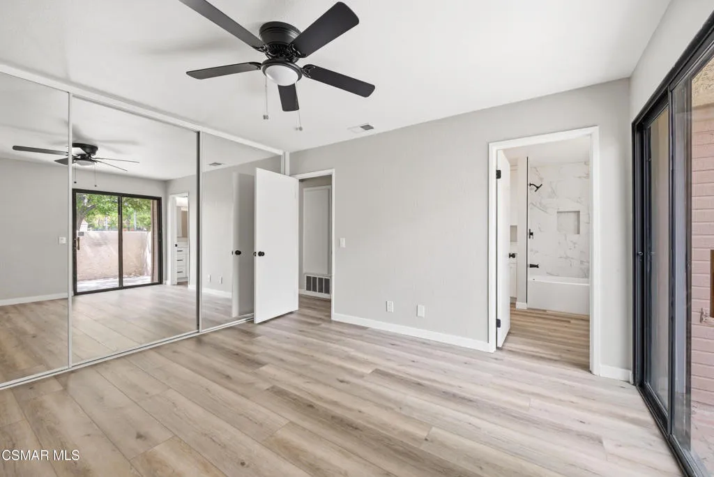 Welcome to this newly remodeled modern end-unit townhome in the heart of Simi Valley, offering 2 bedrooms and 1 bathroom. This move-in-ready home features laminate flooring throughout and an updated kitchen with quartz countertops and stainless steel appliances. The spacious primary bedroom includes an en-suite bathroom with quartz countertops and a stylish tile shower/tub combination. Enjoy outdoor living with two private patios, perfect for relaxing or entertaining. Additional highlights include a 2-car attached garage with direct access and extra guest parking nearby. Located in a desirable community with a pool and spa, this home offers comfort, style, and convenience.