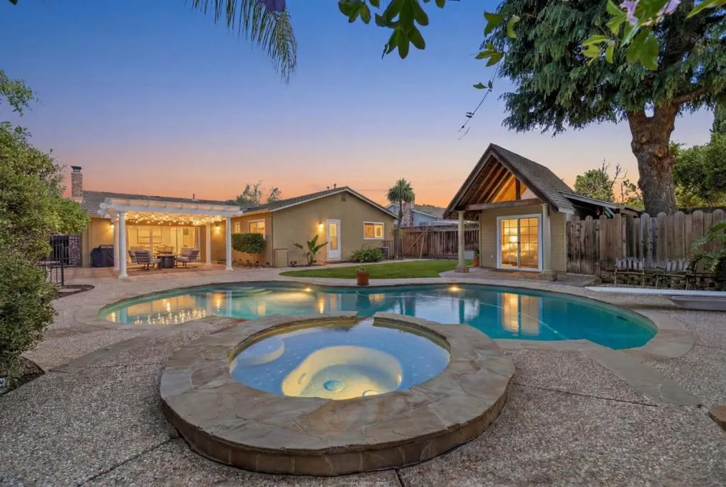 Welcome to 711 Chatsworth Place, a 4-bed, 2-bath home tucked within a quiet court setting. With its east-facing orientation, the home is filled with natural light, and the kitchen is bathed in morning sunan ideal start to the day. The remodeled interior offers a well-balanced layout, highlighted by a spacious kitchen with modern appliances and an oversized island designed for both everyday living and entertaining. Separate living, family, and dining rooms provide versatility and flow, while a dedicated indoor mudroom adds everyday convenience. A spacious two-car garage provides both functionality and ample storage. The backyard is designed for entertaining, featuring a large concrete dining area beneath a pergola, low-maintenance turf for pets or play, and a pool with an attached jacuzzi. A detached bungalow offers flexibility as a pool house, lounge, or private retreat, surrounded by palm trees that create a resort-like setting. Positioned on a court, the home enjoys reduced traffic, added privacy, and a comfortable environment for parking and daily living. Conveniently located near parks, local amenities, and commuter routes, and within a well-regarded school district, this home offers a seamless blend of comfort, functionality, and lifestyle.