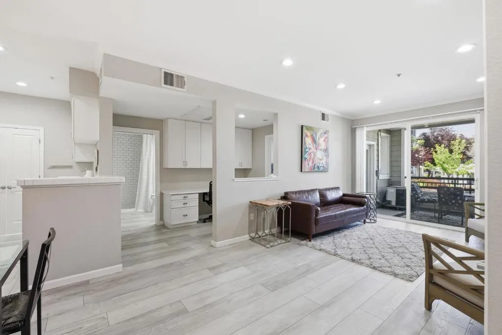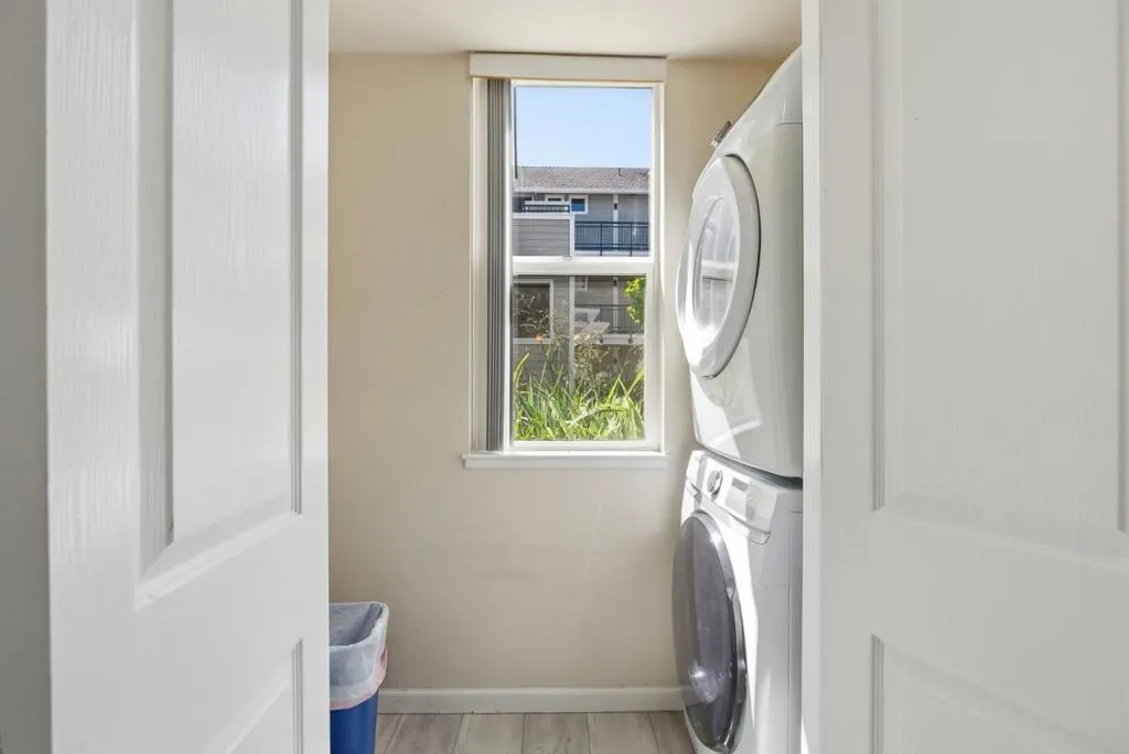 Luxury Living at Woodland Creek. This beautiful 1 bed 1 bath Condo offers a spacious open floor plan of 821 sqft of living space with great amenities. Conveniently located on the 1st floor of Building 3, this Condo features upgraded vinyl flooring throughout, upgraded LED recessed lighting, upgraded dining room light fixtures, tile countertops, dishwasher, built-in/oven range combo, microwave, in-unit stackable washer/dryer in pantry room, Nest Thermostat with A/C, a large walk-in closet, and a balcony. The condo also comes with 2 parking permits: 1 assigned space in the secure, underground parking garage with elevator access, and 1 unassigned parking space in the common parking area. Amenities include: Clubhouse, Fitness Center, Swimming Pool and Hot Tub. Within minutes: Embarcadero Shopping Plaza, 101 Freeway, Downtown Palo Alto, Stanford University, Stanford Shopping Center and major Tech companies. Pets are allowed.