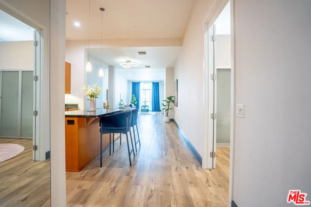 The most luxurious and desirable high-rise condominium "The Summit on Sixth" in Mid-Wilshire / Koreatown. The Summit is located in the prime location as it is only a block away from Wilshire Blvd. and Vermont Ave., close to all kinds of transportation, entertainments, banks, restaurants, markets and more. Unit 205 offers a huge masterbedroom + 2 full bathroom and a good size 2nd bedroom with 11.5' high ceiling, facing the North view very well shows Hollywood, Los Feliz, and Griffith Observatory. The unit also boasts newly installed trendy vinyl floors, huge island and granite top, sleek and modern open style kitchen, and also fully equipped with luxury stainless appliances. You can enjoy fully loaded amenities such as virtual screen golf system, dry sauna, fitness center, concierge, 24hr security, on-site management, and much more.