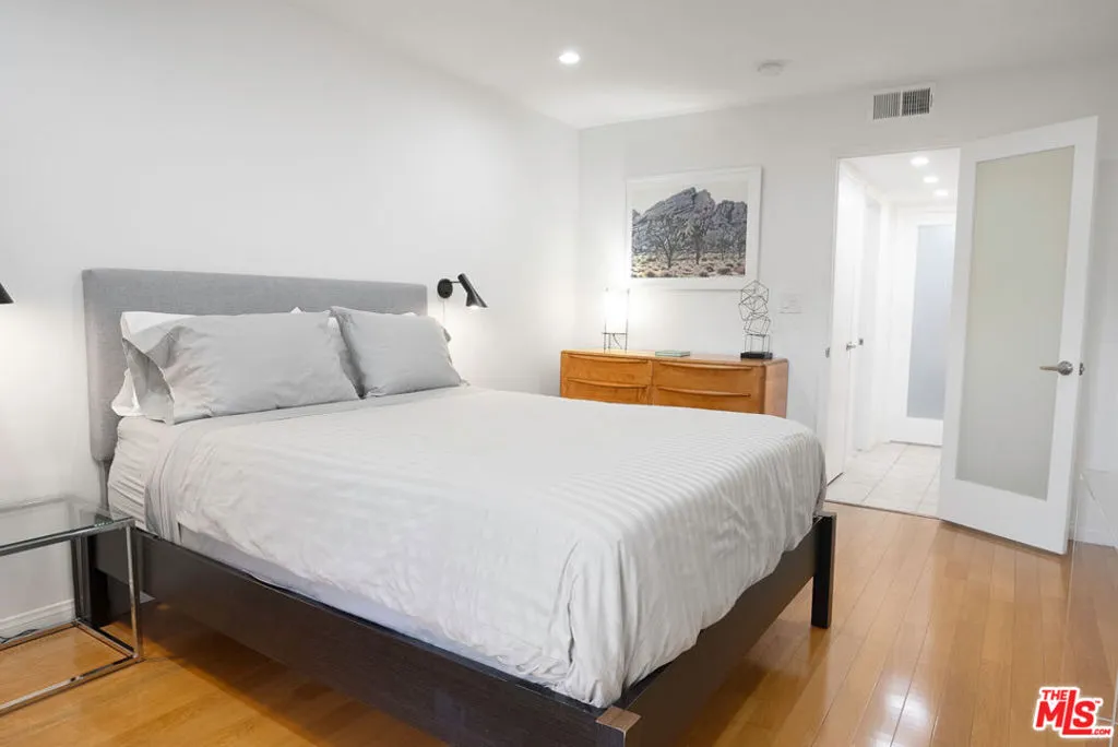 Stunning Mid Century renovated architectural, steps to Montana Ave! Unique Light & Bright top floor unit features vaulted ceilings, clerestory windows, hardwood & tile flooring, recessed lighting, quartz countertops, fireplace, central air & heat, full size washer & dryer -(inside unit). New designer kitchen sparkles with Walker Zanger Tile, new Bosch@ dishwasher, new quartz countertops, new Samsung@ fridge new sink, new disposal, new plumbing. Huge 1 bed, 1 bath with large closets. Additional luxuries include -two designated tandem parking spaces in a secure garage with storage. All windows are double pained for great insulation. Serene outdoor terrace with large sliding doors from the bedroom & living room create a perfect indoor - outdoor flow. 12 blocks to THE BEACH, quiet 10 unit building. Faces South and North. Earthquake insurance included in the low HOA dues. NO rental restrictions! Recent HOA upgrades include: new hot water heater, new garage gate motor, new balconies, new structural reinforcement, new main sewer-line! A rare unit in the best neighborhood! ( dining room light fixure and TV's not included in sale).