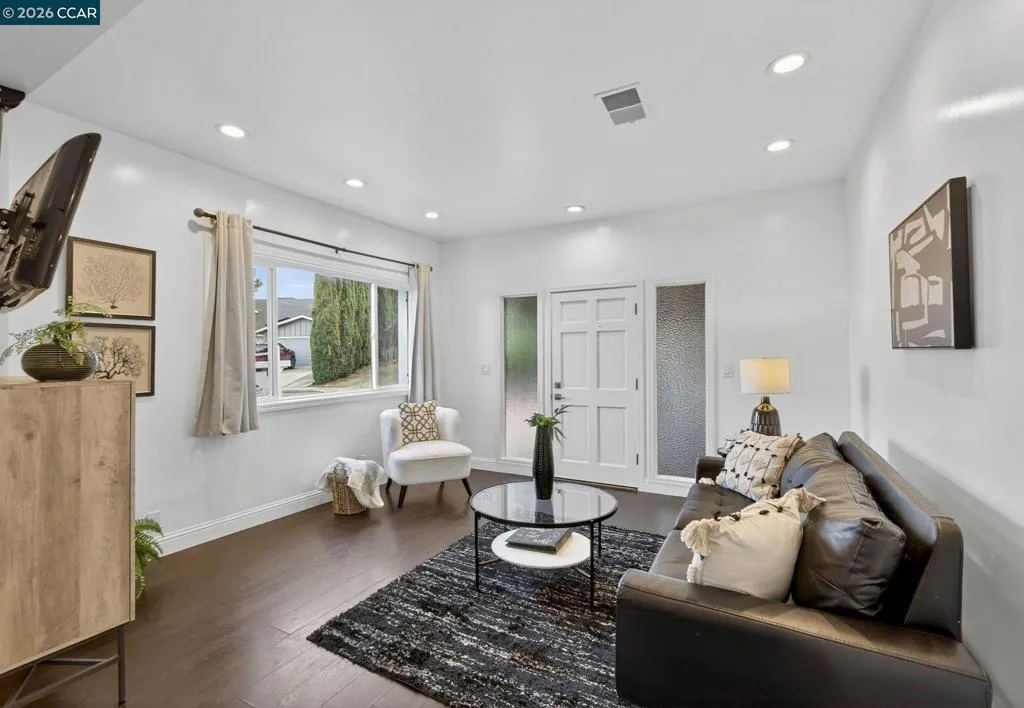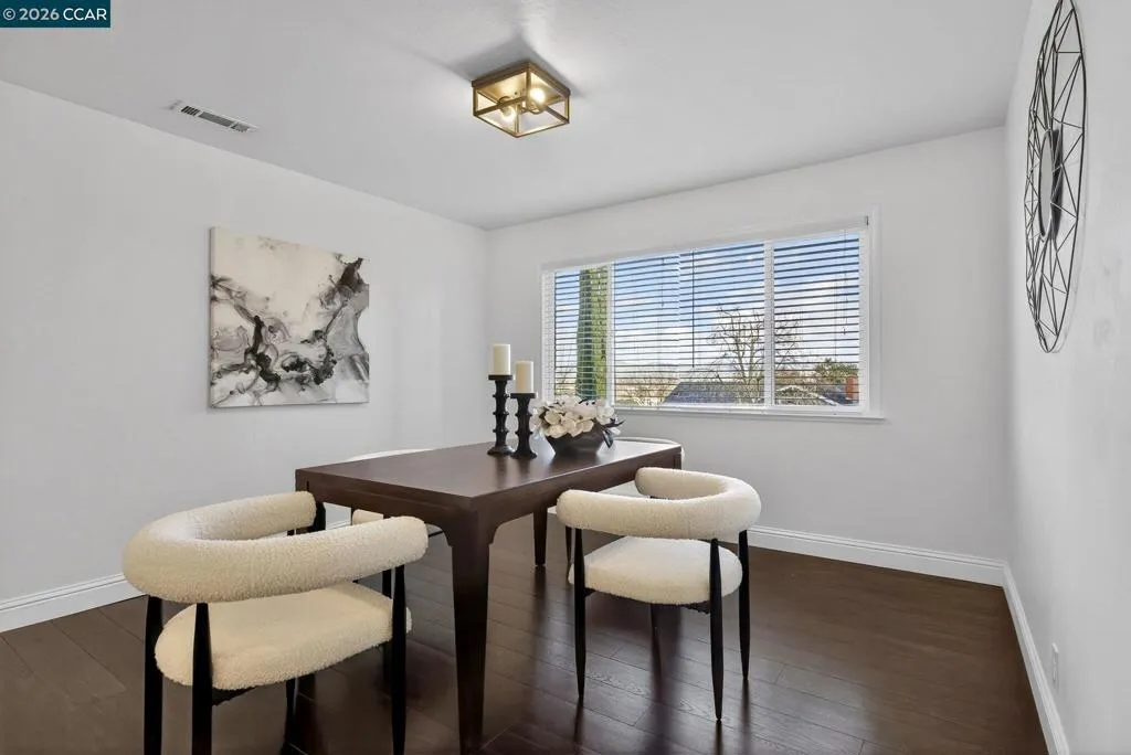 An exceptional opportunity! Nestled at the end of a quiet court in a highly desirable Pleasant Hill neighborhood, this exceptional property captures breathtaking views of Mt. Diablo while offering rare flexibility with an attached ADU. The main residence features 3 bedrooms, 2 bathrooms, and approximately 1,488 sqft of bright, thoughtfully designed living space. Highlights include double-pane windows, an updated kitchen and bathrooms, designer flooring, and an open, light-filled floor plan that seamlessly connects the living areas all enhanced by stunning panoramic views.The attached ADU offers 2 bedrooms, 1 bathroom, and approximately 540 sqft of comfortable living space, complete with a living room, private entrance, and its own washer and dryer ideal for generating rental income, accommodating in-laws, or supporting multi-generational living. Laundry is available in both units for added convenience. Ideally located near Paso Nogales Park, top-rated schools, Diablo Valley College, shopping, dining, and major commuter routes. A truly rare opportunity combining scenic views, a prime court location, and exceptional versatility.