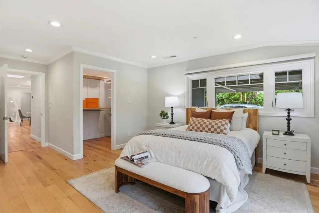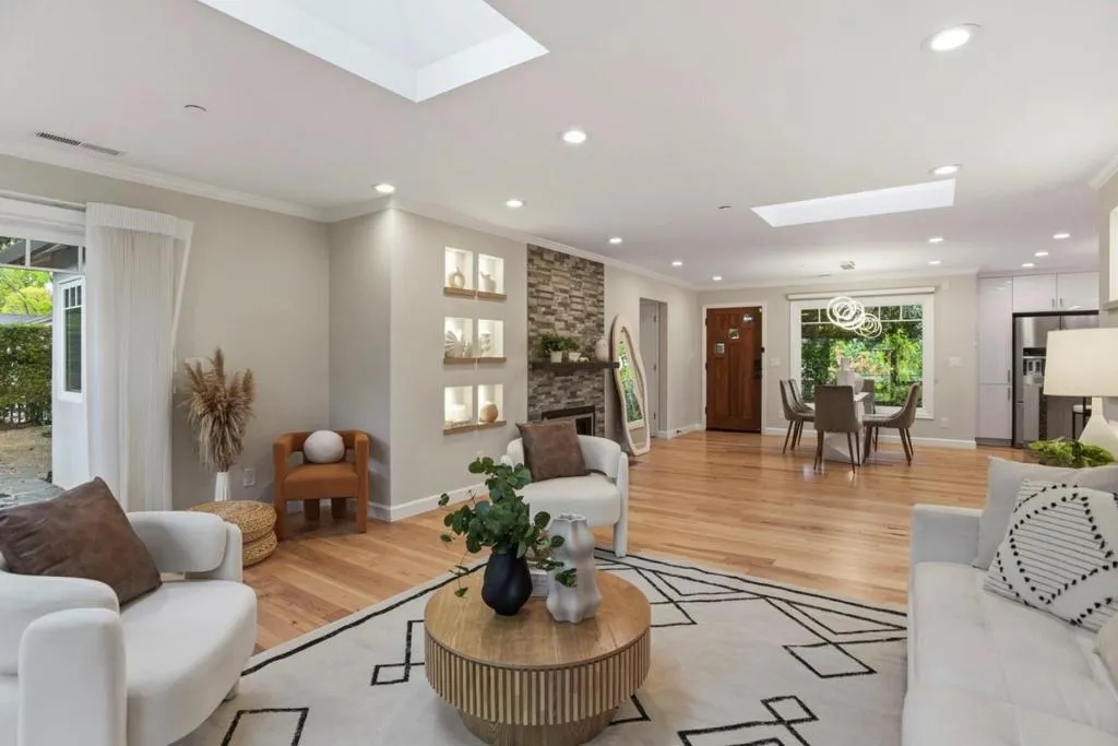 Welcome to 425 Concord Drive, a beautifully reimagined Menlo Park home where modern design, quality craftsmanship, and prime location come together. This expanded 4-bedroom, 3.5-bath residence has undergone multiple permitted renovations, offering a turnkey lifestyle with high-end upgrades, flexible living, and seamless indoor-outdoor flow. The open, light-filled layout features engineered wood flooring and multiple skylights with remote-controlled shades that fill the home with natural light, along with a fully redesigned kitchen and living area ideal for everyday living and entertaining. Two suite-style bedrooms include a private setup with its own entrance and full bath, perfect for guests, extended family, or potential rental income. Enjoy professionally designed landscaping with multiple garden spaces, flagstone patios, mature hedges for privacy, and a Japanese-style front garden. Additional highlights include a detached office with AC, Tesla EV charger, upgraded HVAC, tankless water heater, smart irrigation, high-speed wiring, and a dedicated bike storage shed. Located in the desirable Willows neighborhood near Palo Alto, top schools, parks, and major tech campuses. A rare move-in-ready opportunity.