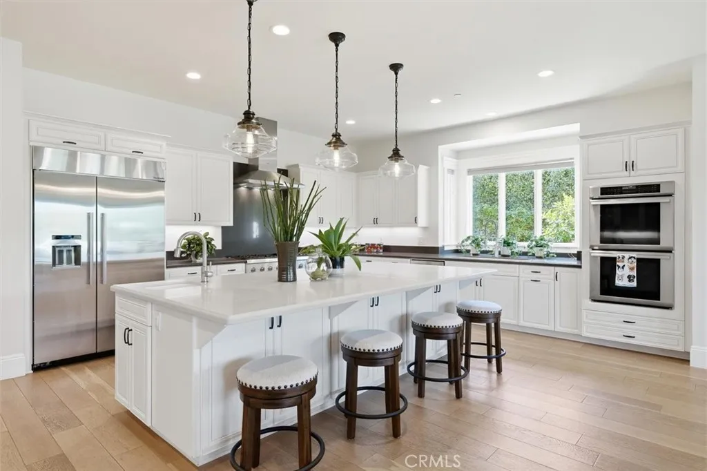Rarely does a residence so perfectly balance contemporary design with the quiet charm of its surroundings. Tucked away at the end of a tranquil cul-de-sac, this 2016-built estate offers a premier opportunity to secure a newer construction home in the heart of Rolling Hills Estates. Spanning approximately 3,700 square feet on a lush half-acre lot, the property is designed with an emphasis on light and space. The home boasts soaring vaulted ceilings and a seamless, open-concept floor plan that prioritizes both effortless daily living and high-end entertaining. At the center of it all is a gourmet kitchen that serves as the home's heart, featuring a grand center island, premium Thermador appliances, and a seamless connection to the family room and sun-drenched outdoor spaces. Thoughtfully designed for privacy, all four bedrooms are en suite, each equipped with dedicated, full bathrooms and walk-in closets. The primary suite serves as a private retreat and opens directly to the backyard to capture peaceful pastoral and valley vistas. Throughout the interior, high-end finishes like wide-plank white oak flooring, dual-zoned air conditioning, and eight-foot solid core doors underscore the residence’s quality construction. Outside, the grounds have been transformed into a private resort, replete with tranquil water features and multiple seating areas designed to frame sweeping territorial and sunset views. The mature gardens are both beautiful and productive, offering a variety of fruit trees, cutting flowers, and dedicated planting beds. Beyond aesthetics, the home is equipped with modern essentials, including a three-car garage plumbed for EV charging, a whole-house water filtration system, and a fire sprinkler system. Ideally located near top-tier schools and the South Bay’s finest dining and beaches, this turnkey residence represents a sophisticated fusion of size, style, and serenity.