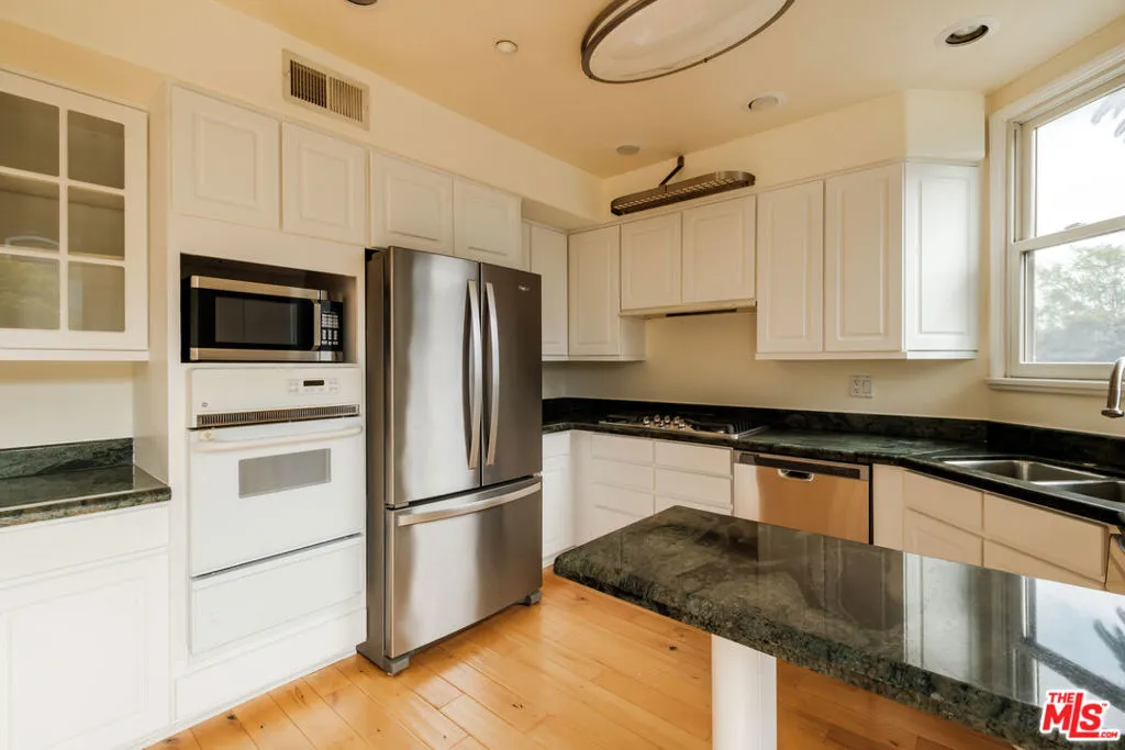 Ideally situated in the heart of Westwood, this beautifully maintained 3-bedroom, 2.5-bath residence offers privacy, scale, and refined living with only one unit per floor, a rare configuration for those who value both space and quiet. Direct elevator access opens into the home, while a secured lobby with controlled entry provides an added layer of privacy and peace of mind. The expansive living and dining areas are filled with natural light and feature a fireplace, along with a built-in bar and sink, equally suited for focused remote work, everyday living, or effortless entertaining. The open kitchen is appointed with Italian granite countertops and connects to a private balcony, enhancing the home's bright and airy feel. The spacious primary suite serves as a private retreat, complete with its own decorative fireplace and a newly renovated bath featuring a new soaking tub, new dual-sink vanities, and modern finishes throughout. Two additional bedrooms share a well-appointed full bath, and a separate powder room accommodates guests. A large in-unit laundry room with newer washer and dryer adds everyday functionality. Recently painted and featuring a brand-new HVAC system, this move-in-ready residence also includes gated side-by-side parking with a Tesla charger. Set on a quiet, tree-lined street just moments from Westwood Village and some of the area's best dining and shopping, this is a rare long-term lease opportunity for established professionals seeking a permanent home base in one of Westwood's most desirable locations.