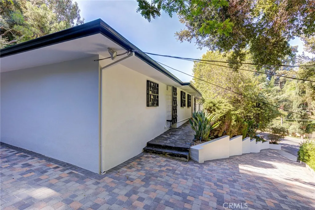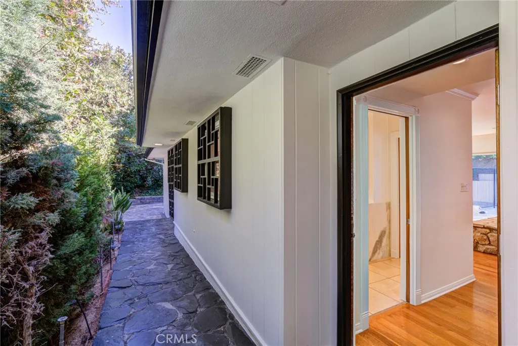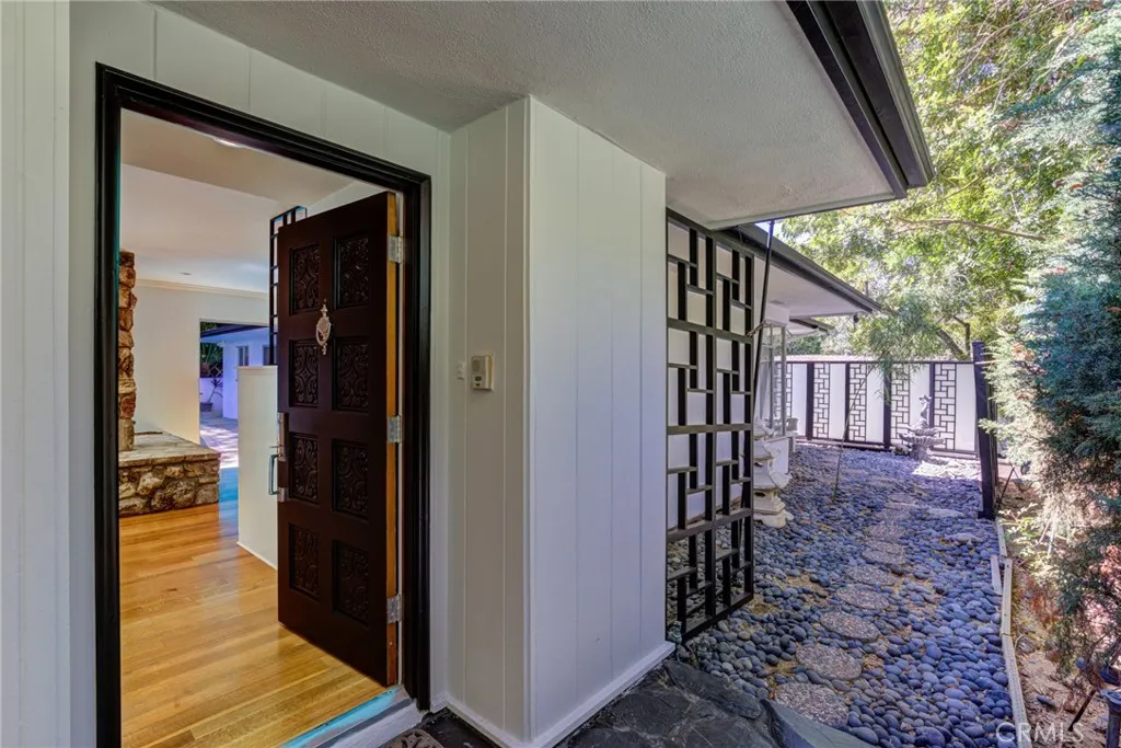 This unique L Mid Century home was designed to over look the pool from all bedrooms including the family room and den. The open airy floor plan provides generous natural light creating an ideal setting for both entertaining and everyday living or quiet relaxation. The kitchen has been updated with Quartzite stone counters and a new wine refrigerator, dishwasher. The den has a wet bar with an ice maker by Scotsmen. The primary bedroom features a spa bath with a lounging soaking tub with air jet and separate double sinks with travertine stone counter and walls with a vanity area, built in closet. The primary bedroom has a sliding door leading to the pool for an early morning swim. This property has been painted professionally throughout interior and exterior. The backyard completes this home with a sparking pool surrounded by peaceful landscape and lush greenery, it's situated on a quiet street with plenty of street parking.