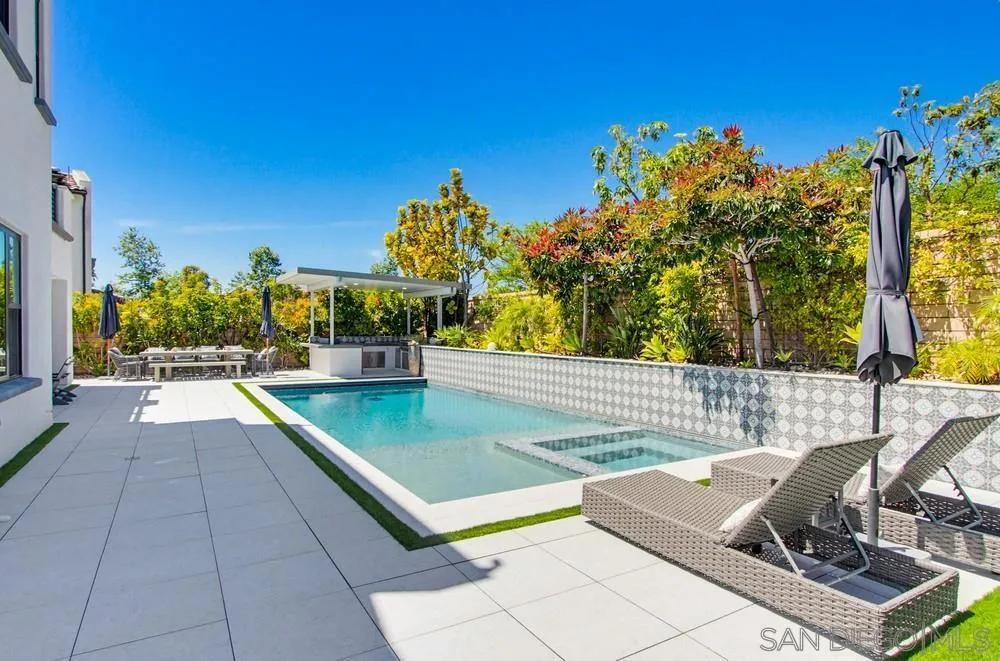 Welcome to 6136 Seafaring Way, a rare opportunity in the heart of Carmel Valley’s highly sought-after Pacific Highlands Ranch community. Set on a premium lot with no homes directly behind, this residence offers enhanced privacy, open views, and a welcoming sense of space in one of San Diego’s most desirable neighborhoods. This well-maintained home features a functional floor plan with four bedrooms, each with its own en-suite bathroom, providing comfort and flexibility for family and guests. The kitchen opens to the main living area and showcases a waterfall-edge island, ample cabinetry, and generous storage for everyday living and entertaining. Large sliding doors create seamless indoor-outdoor flow and fill the home with natural light. The living room is warm and inviting, highlighted by built-in cabinetry and a fireplace with custom marble hearth. The primary suite offers a private balcony with peaceful views, a large walk-in custom closet, and a spa-like bathroom designed for relaxation. Step outside to a private backyard designed for entertaining, featuring a pool with safety cover, built-in BBQ, custom sunken fire pit, citrus trees, and a turf play area. Additional highlights include owned solar for energy efficiency. Conveniently located near top-rated schools, parks, shopping, dining, and minutes from the coast, this home offers an exceptional Pacific Highlands Ranch lifestyle with easy access to Del Mar beaches and coastal trails.