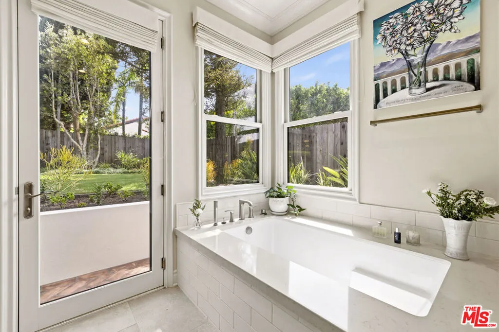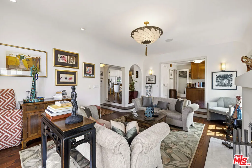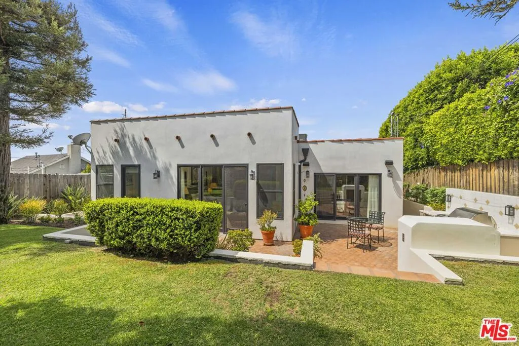 Nestled in the heart of prime Westwood, this beautifully reimagined 4 bedroom, 2-1/2 bathroom residence seamlessly blends Spanish contemporary architecture with modern sophistication. Perched above the street, the home captures wonderful views and is filled with an abundance of natural light, which enhances its open-concept layout and flow. Originally remodeled in 2014, the property has been thoughtfully updated while preserving its character, including stunning arched details, warm walnut-toned engineered hardwood floors, and a classic wood-burning fireplace that anchors the living space. The chef's kitchen is both functional and refined, featuring a double oven and generous pantry storage with custom built-ins throughout. Designed for comfort and convenience, the home is equipped with a Sonos audio that extends to the outdoor areas, surround sound speakers, integrated security cameras, and a comprehensive alarm system. Major systems were upgraded during the remodel, including HVAC and a tankless water heater, ensuring modern efficiency and peace of mind. The spacious primary suite offers a true retreat, complete with a fireplace and walk-in closet. Outdoor living is equally compelling, featuring a lush green backyard with ample space to relax or entertain, complemented by a built-in BBQ, stove top, fridge, outdoor fireplace, and a tranquil water fountain that creates a resort-like atmosphere. A detached garage is topped with a large, fully-realized patio deck, an ideal setting for gatherings, dining under the stars, or simply taking in the surrounding views. Additional highlights include sprinkler and drip irrigation systems, approximately 2,000 square feet of living space on a generous 6,600+ square foot lot, and placement within the highly sought-after Westwood Charter Elementary school district. A rare offering that combines charm, scale, views, and cutting-edge amenities in one of Westwood's most desirable neighborhoods.