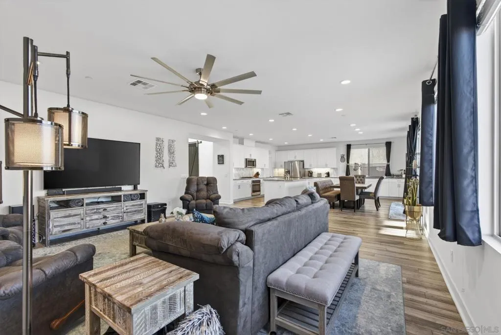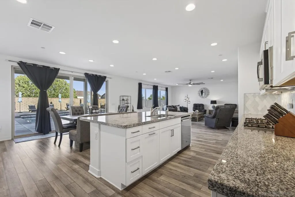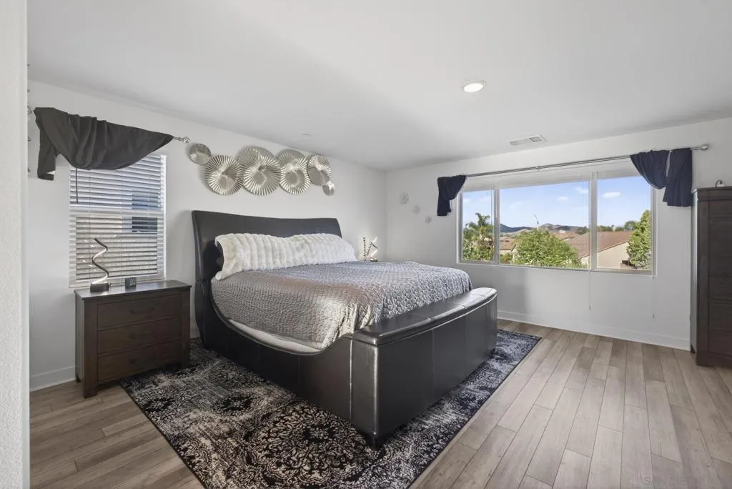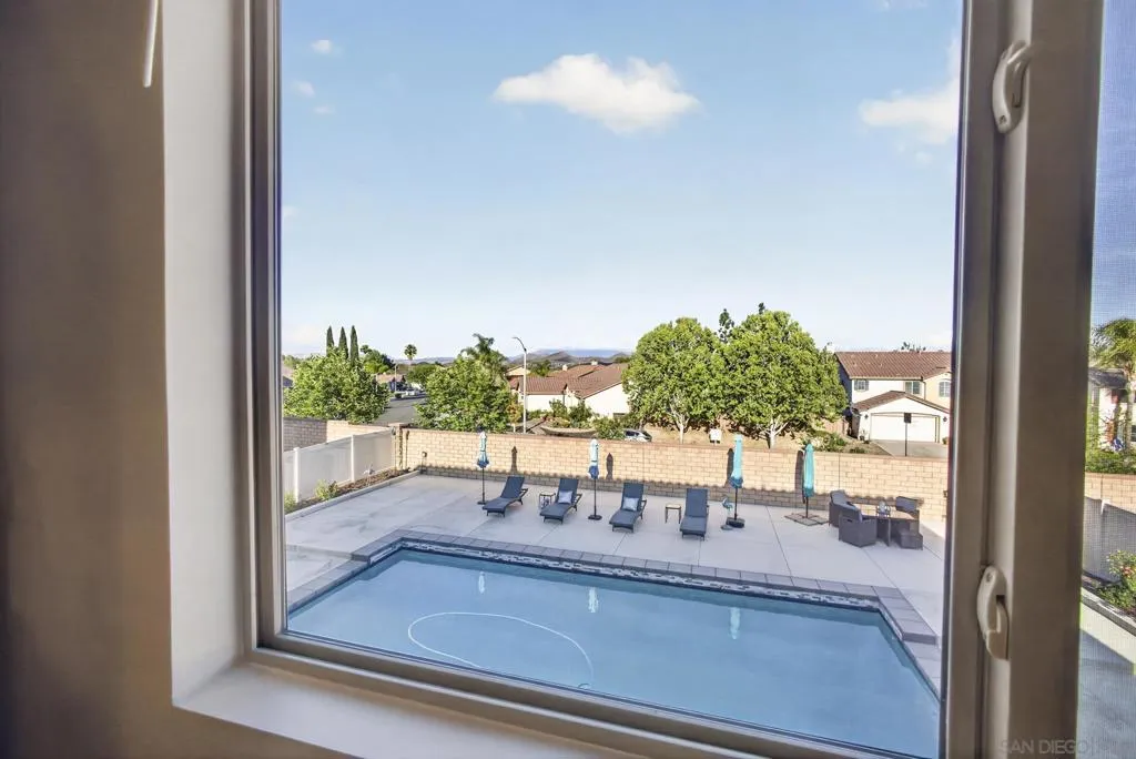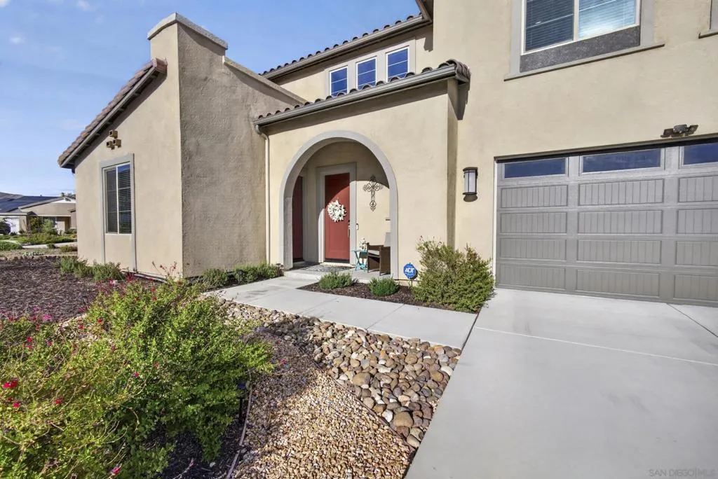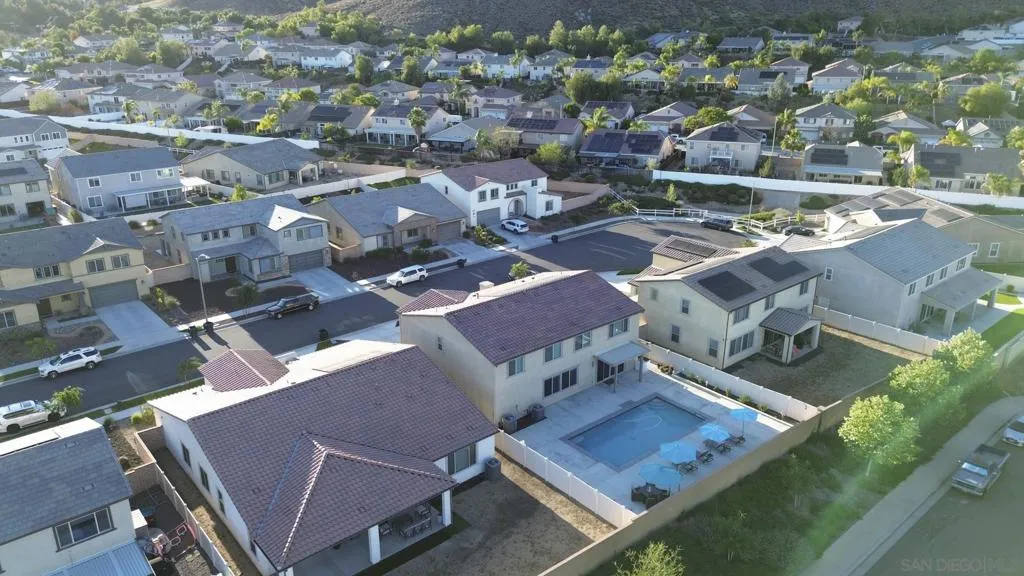 Audie Murphy Ranch 2022 popular “Next Gen” design ideal as an investment tool or generational family living. This bonus design featuring an attached ADU with private entry, mini great room & kitchenette plus stackable washer & dryer, full bath & bedroom with a walk in closet, plus a secure interior entrance into primary home. Primary home has an entry covered porch boasting elegance as you enter the home with dramatic high ceilings in spacious foyer. The heart of the home is the expanded kitchen design with large island accented by stainless appliances with satin white cabinetry. Upgraded 12 ft stacking slider doors going out into large rear yard and serene pool with a view of the rolling hills in the distance over the rear block wall fencing. The 2nd floor expansive bonus entertainment loft area separates the main bedroom suite from the additional bedrooms upstairs and laundry room. The Main Suite features dual closets and bath vanities with custom upgraded tiled spa shower with rain head. Upgraded luxury plank wood-like flooring throughout the home. Nestled in the original horse ranch of Audie Ranch's Master plan design featuring resort-style amenities including pools, sports parks, playgrounds, walking & biking trails, recreation facilities, with convenient proximity to golf, shopping, dining, schools. *Note:Enhanced Photography. Lease Solar. 52 feet level deep back yard with 16x40 pool plus raised flower beds! Included Upgrades: Builder warranties, ceiling fan & weighted fixture prewires, under counter lighting, insulted garage door plus window inserts at garage, garage framed for drive thru access to rear yard (as modeled), extend kitchen cabinets in kitchen, exterior holiday light package -adding outlets on roofline for lighting on switch, thermal foil white satin cabinets, melamine interiors added in all cabinets, Granite & upgraded tile backsplash at kitchen, quartz bath counters in secondary baths, mirrored wardrobe door at master inlet finish, plumbed gas or electric at laundry, hidden flat screen conduit ready behind the wall for clean finish with mounted TV's- (3), Gutters & Downspouts, Gen kitchen: GE appliances, BBQ stubs rear yard, alarm, ring bell & camera's.