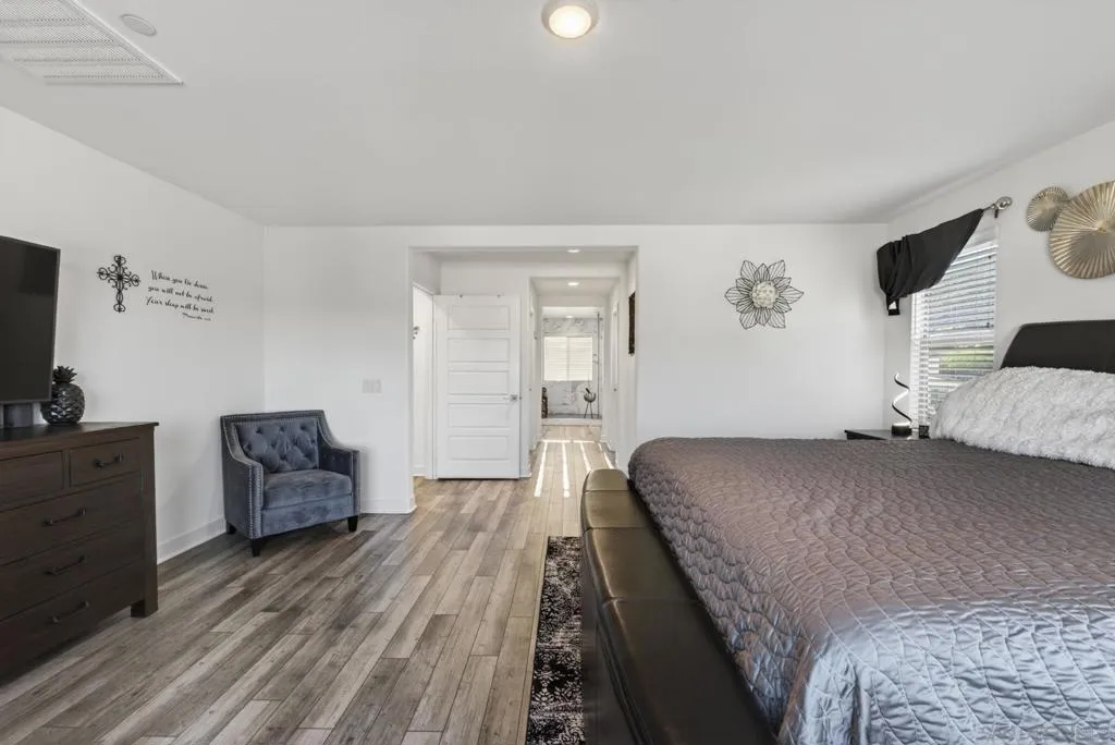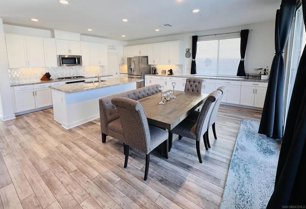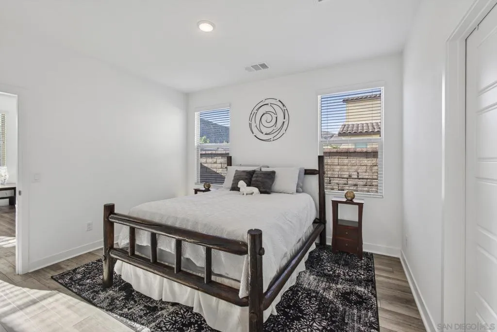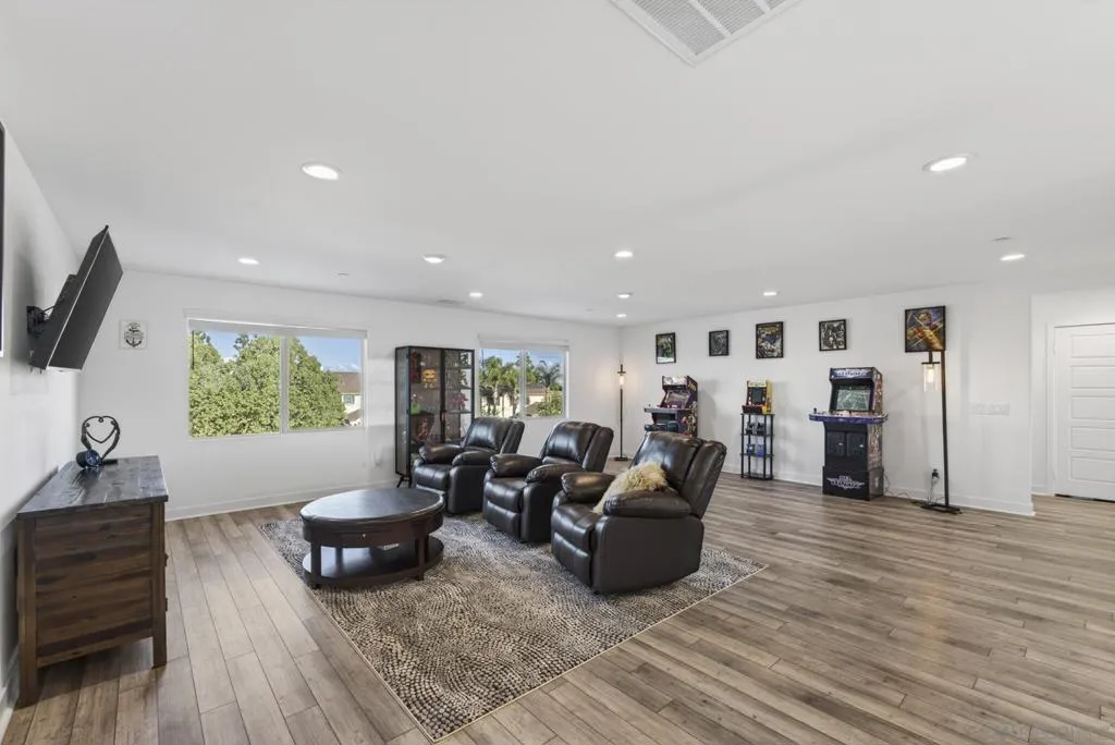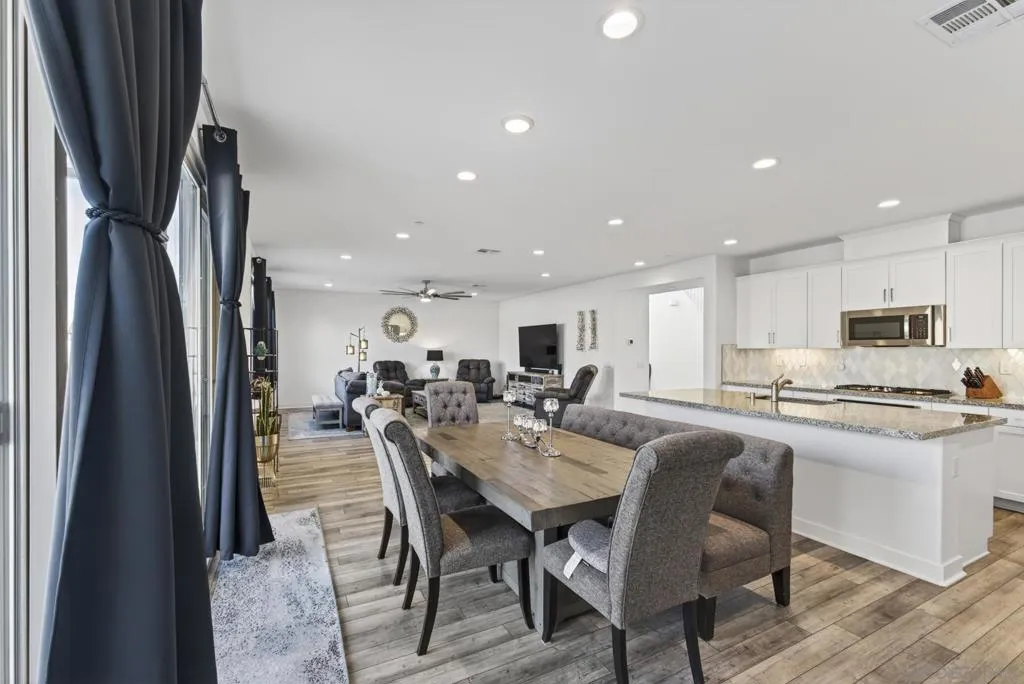 Audie Murphy Ranch 2022 popular “Next Gen” design ideal as an investment tool or generational family living. This bonus design featuring an attached ADU with private entry, mini great room & kitchenette plus stackable washer & dryer, full bath & bedroom with a walk in closet, plus a secure interior entrance into primary home. Primary home has an entry covered porch boasting elegance as you enter the home with dramatic high ceilings in spacious foyer. The heart of the home is the expanded kitchen design with large island accented by stainless appliances with satin white cabinetry. Upgraded 12 ft stacking slider doors going out into large rear yard and serene pool with a view of the rolling hills in the distance over the rear block wall fencing. The 2nd floor expansive bonus entertainment loft area separates the main bedroom suite from the additional bedrooms upstairs and laundry room. The Main Suite features dual closets and bath vanities with custom upgraded tiled spa shower with rain head. Upgraded luxury plank wood-like flooring throughout the home. Nestled in the original horse ranch of Audie Ranch's Master plan design featuring resort-style amenities including pools, sports parks, playgrounds, walking & biking trails, recreation facilities, with convenient proximity to golf, shopping, dining, schools. *Note:Enhanced Photography. Lease Solar. 52 feet level deep back yard with 16x40 pool plus raised flower beds! Included Upgrades: Builder warranties, ceiling fan & weighted fixture prewires, under counter lighting, insulted garage door plus window inserts at garage, garage framed for drive thru access to rear yard (as modeled), extend kitchen cabinets in kitchen, exterior holiday light package -adding outlets on roofline for lighting on switch, thermal foil white satin cabinets, melamine interiors added in all cabinets, Granite & upgraded tile backsplash at kitchen, quartz bath counters in secondary baths, mirrored wardrobe door at master inlet finish, plumbed gas or electric at laundry, hidden flat screen conduit ready behind the wall for clean finish with mounted TV's- (3), Gutters & Downspouts, Gen kitchen: GE appliances, BBQ stubs rear yard, alarm, ring bell & camera's.